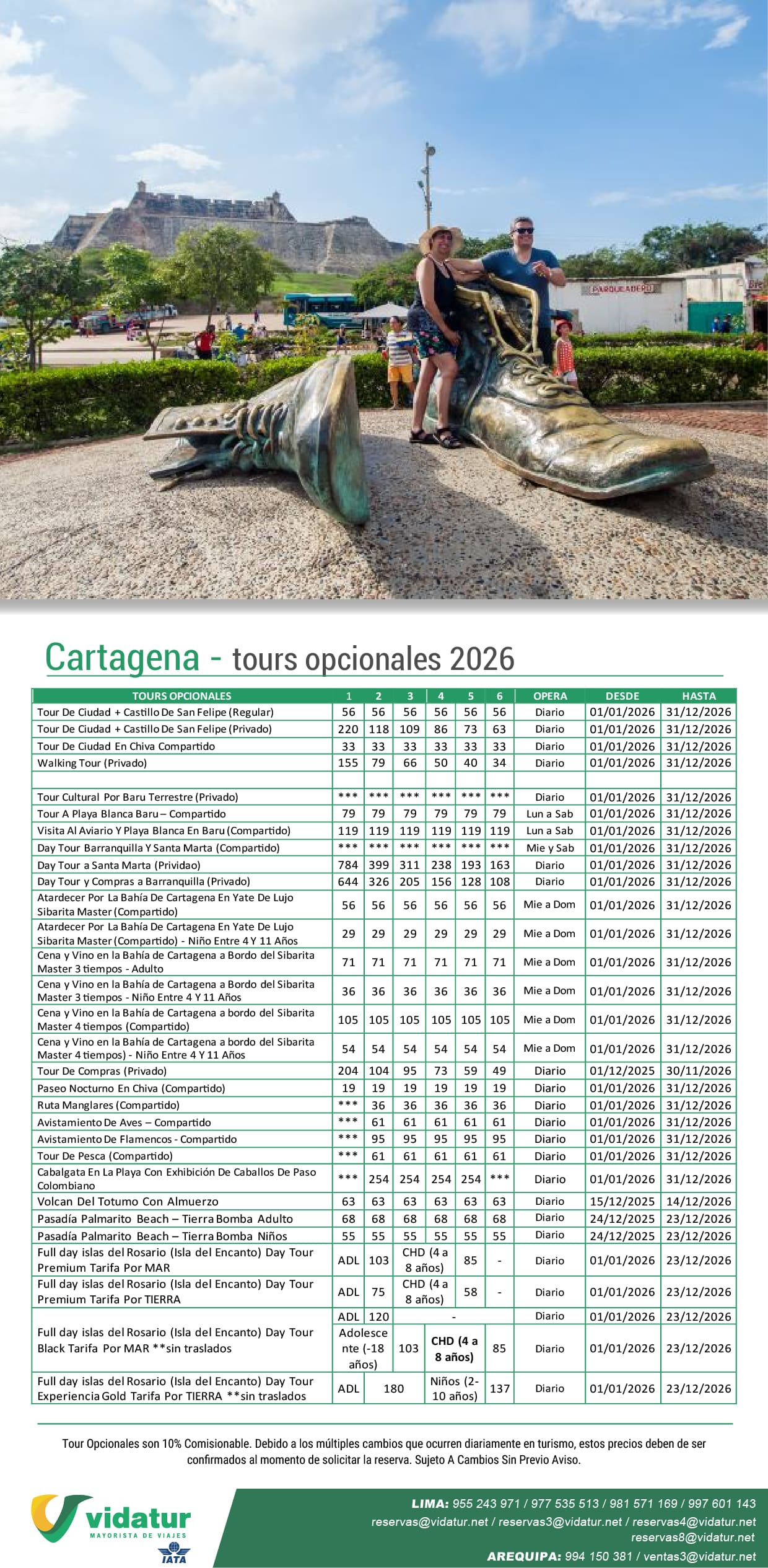 TOURS OPCIONALES CARTAGENA 2026