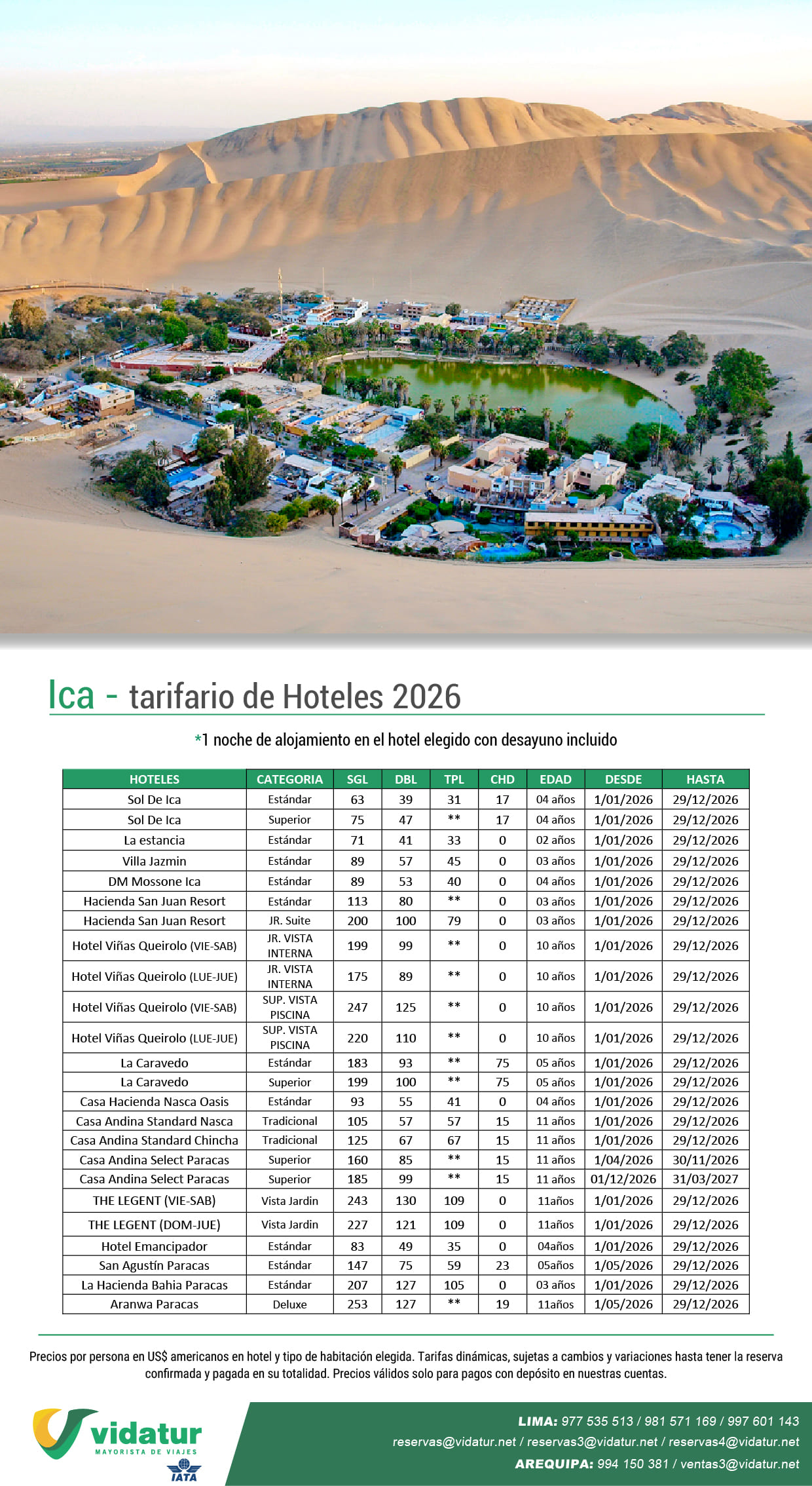Tarifario de Hoteles