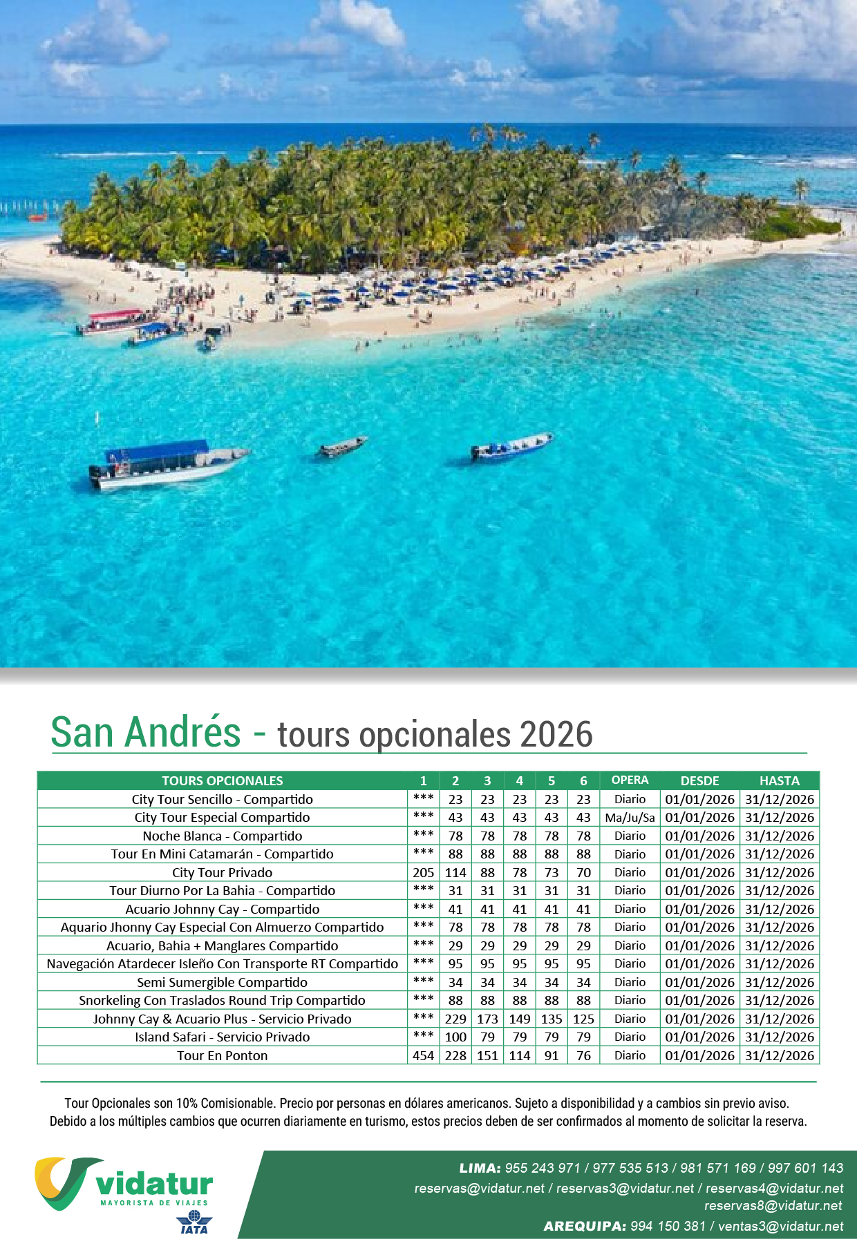 Tours opcionales San Andrés 2026