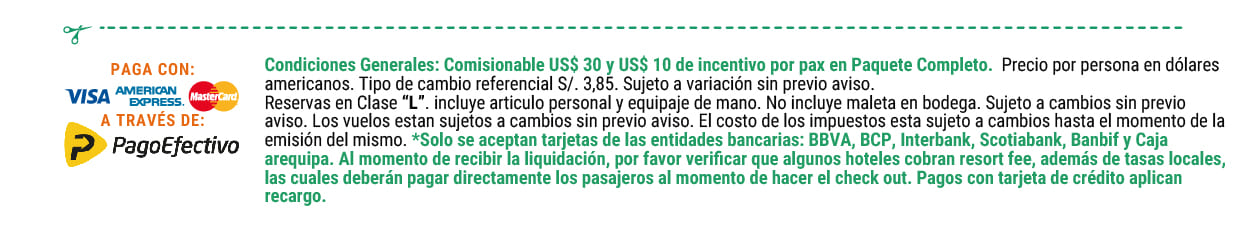 • Traslados aeropuerto / hotel / aeropuerto en regular.