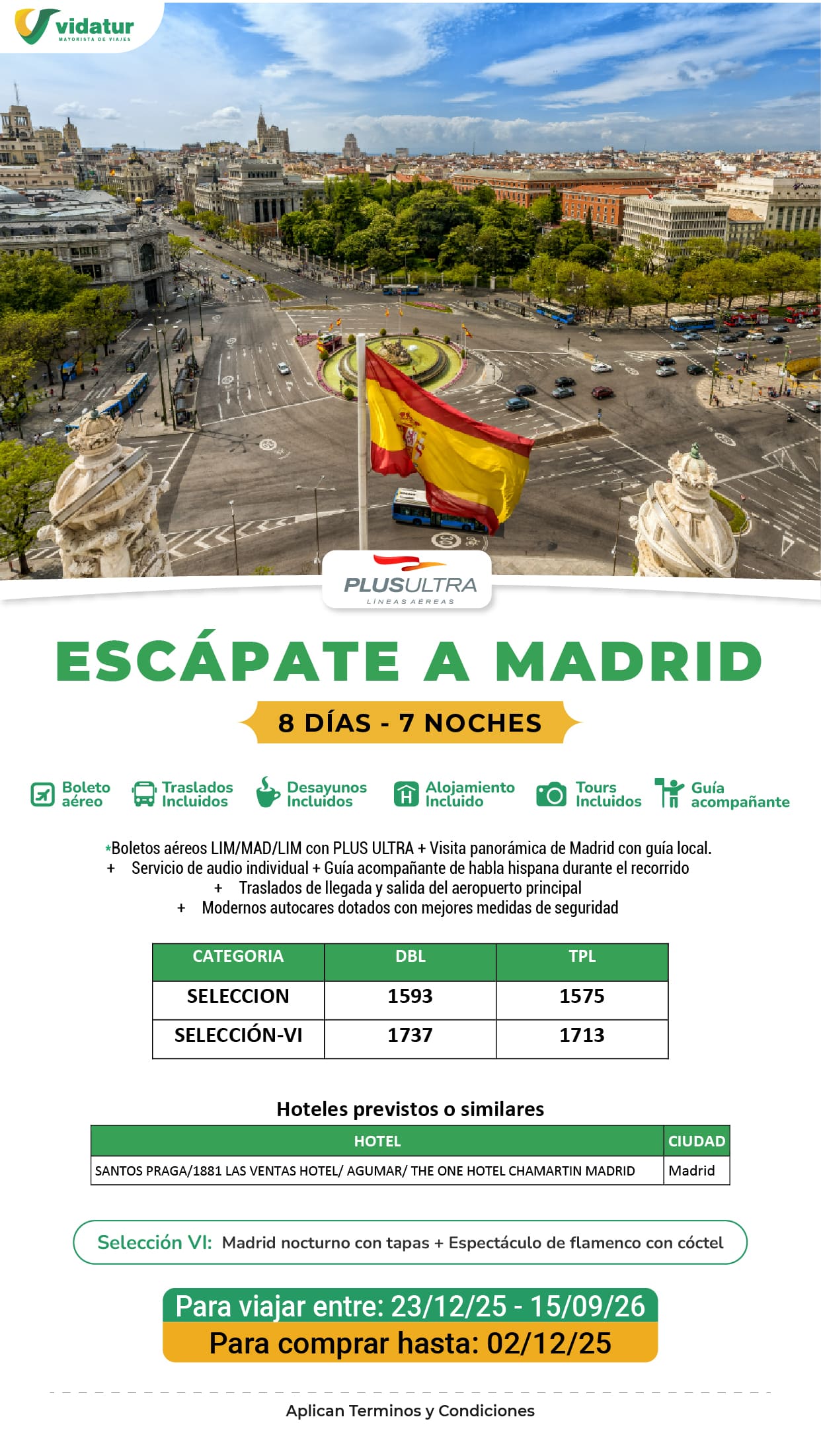 • Boletos aéreos LIM/MAD/LIM con PLUS ULTRA