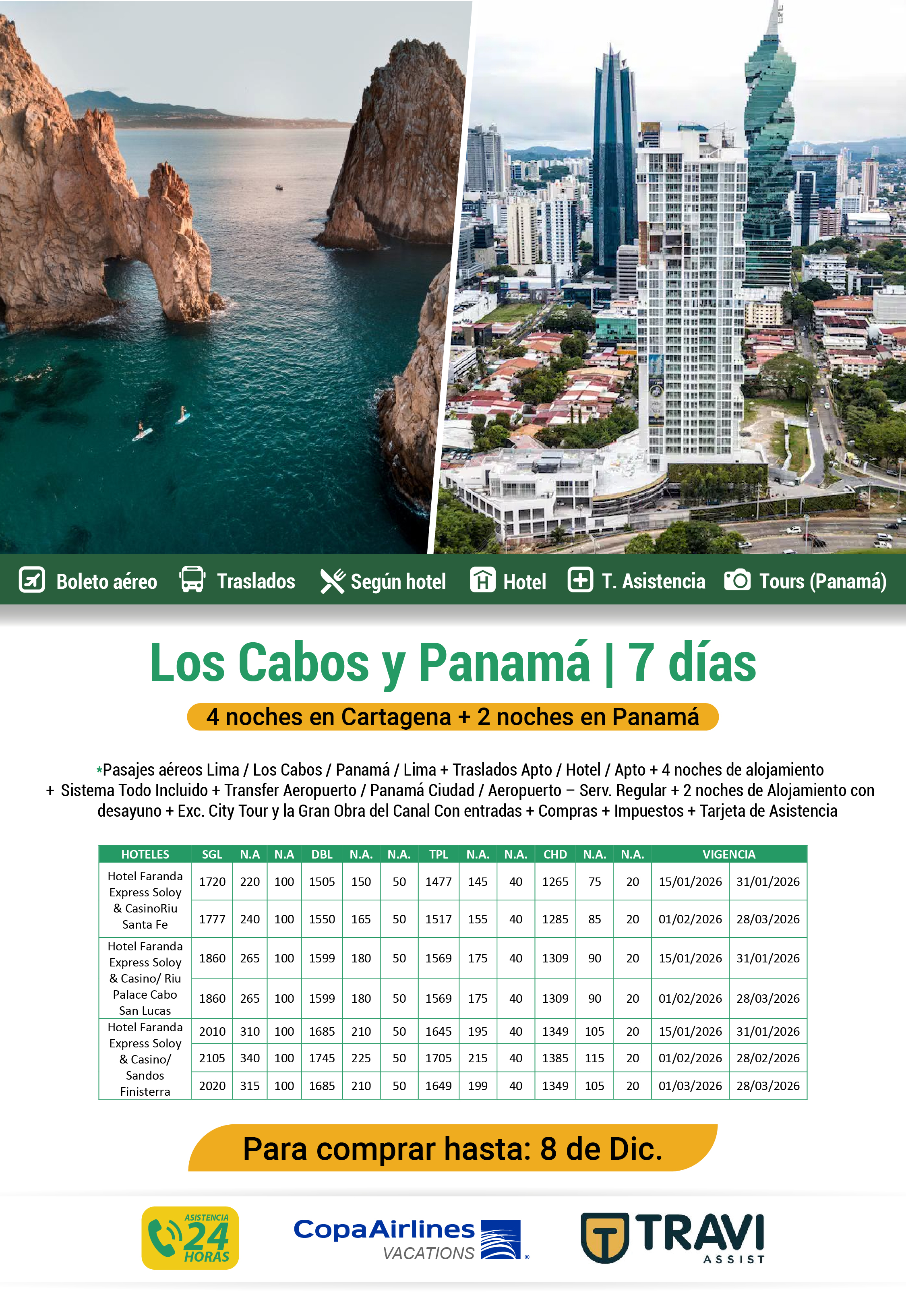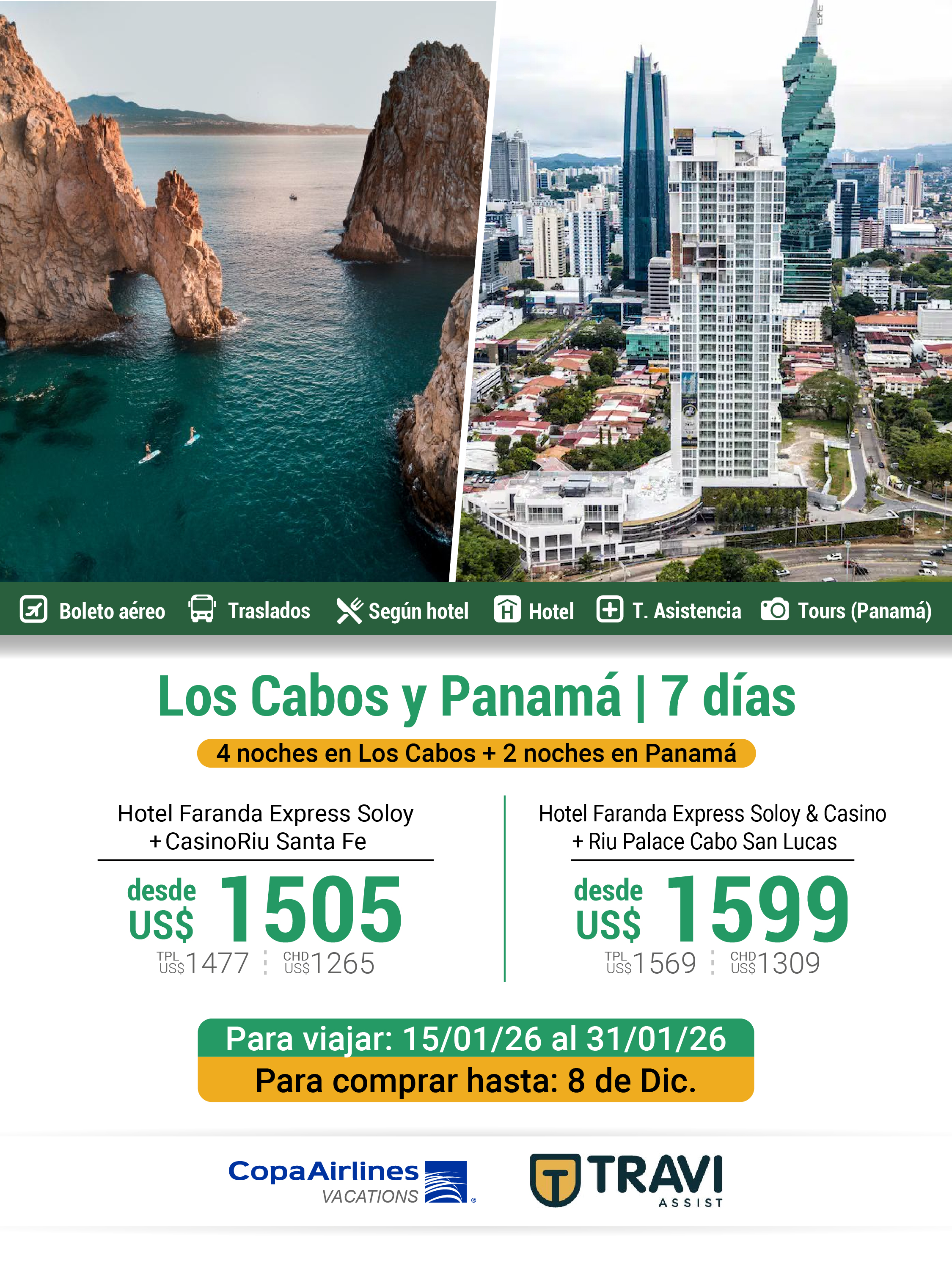 • Pasajes aéreos Lima / Los Cabos / Panamá / Lima