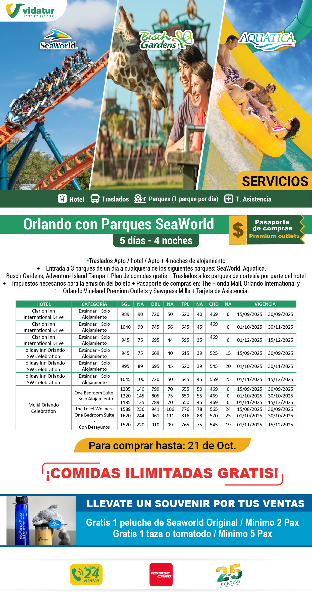 • Pasaporte de compras en: The Florida Mall, Orlando International y Orlando Vineland Premium Outlets y Sawgrass Mills.