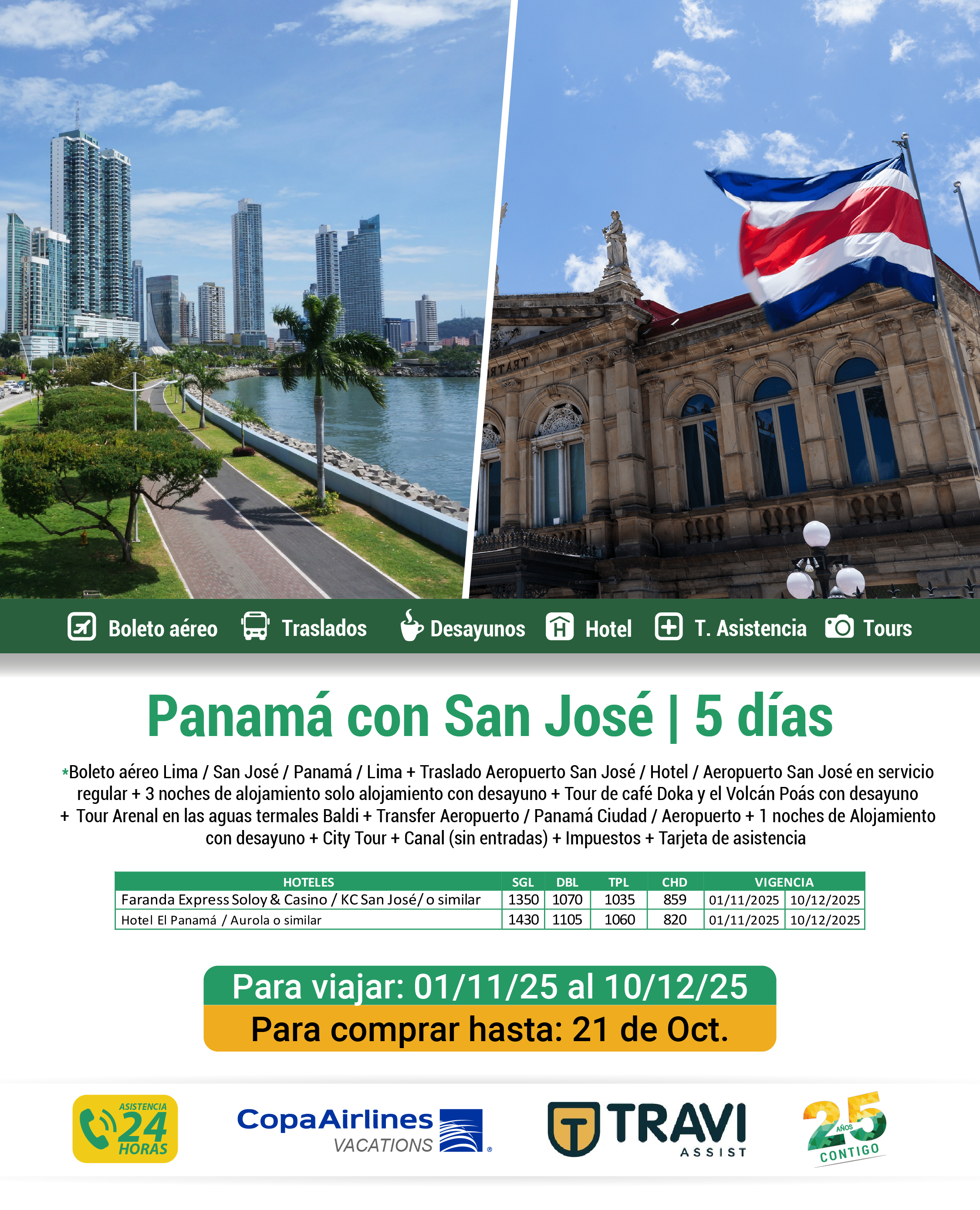 • Boleto aéreo Lima / San José / Panamá / Lima