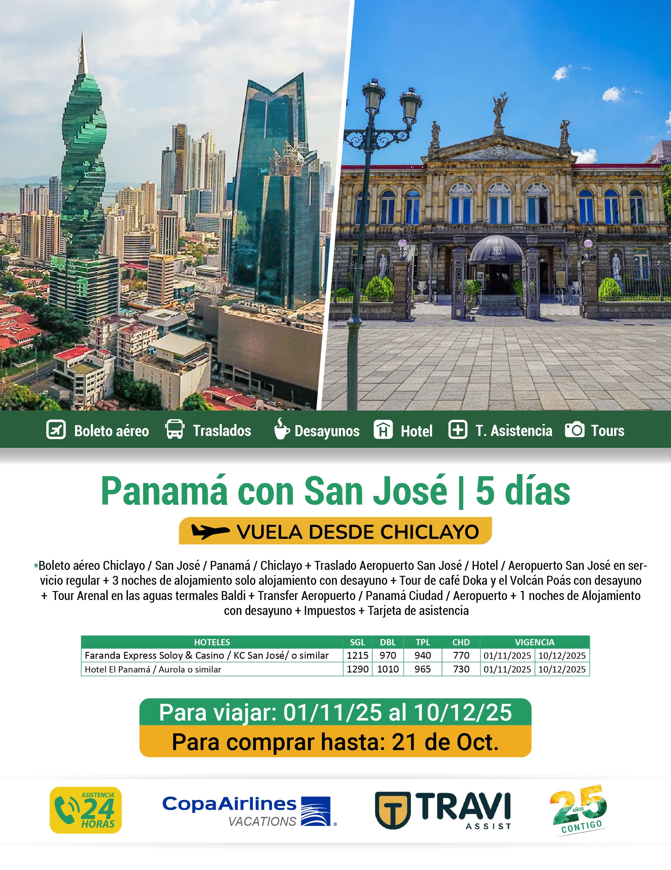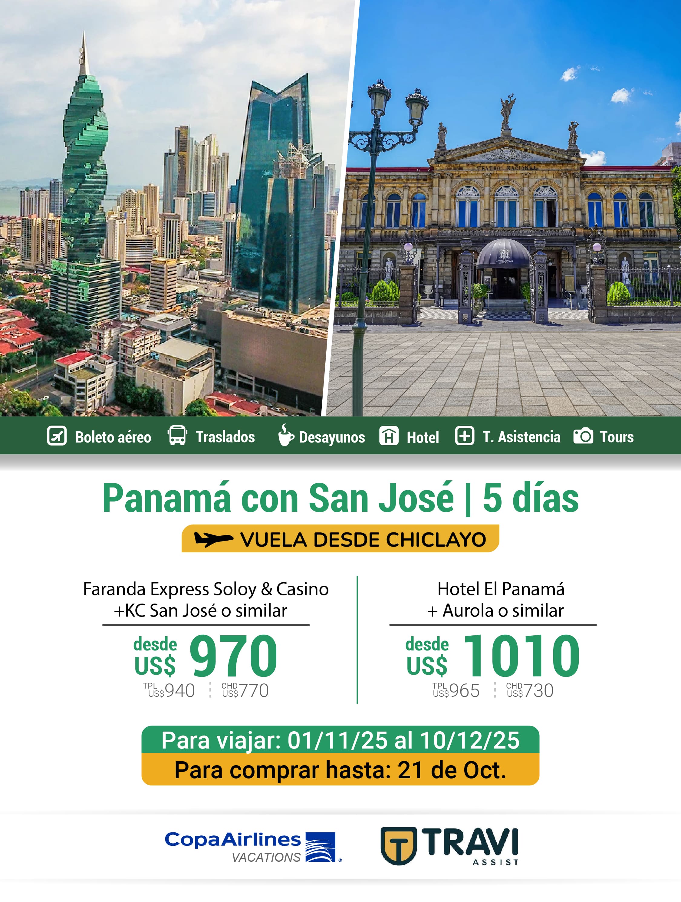 PROMOCIÓN PANAMA CON SAN JOSE DESDE CHICLAYO CON COPA 2025