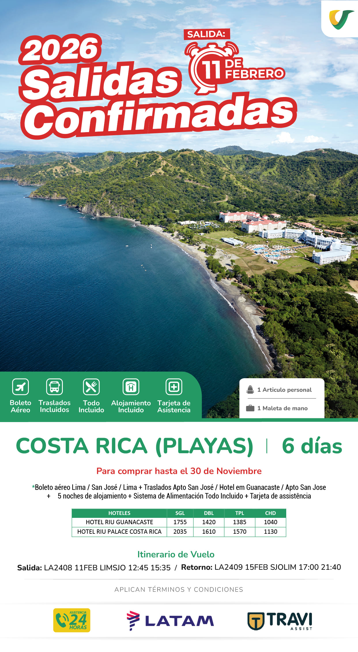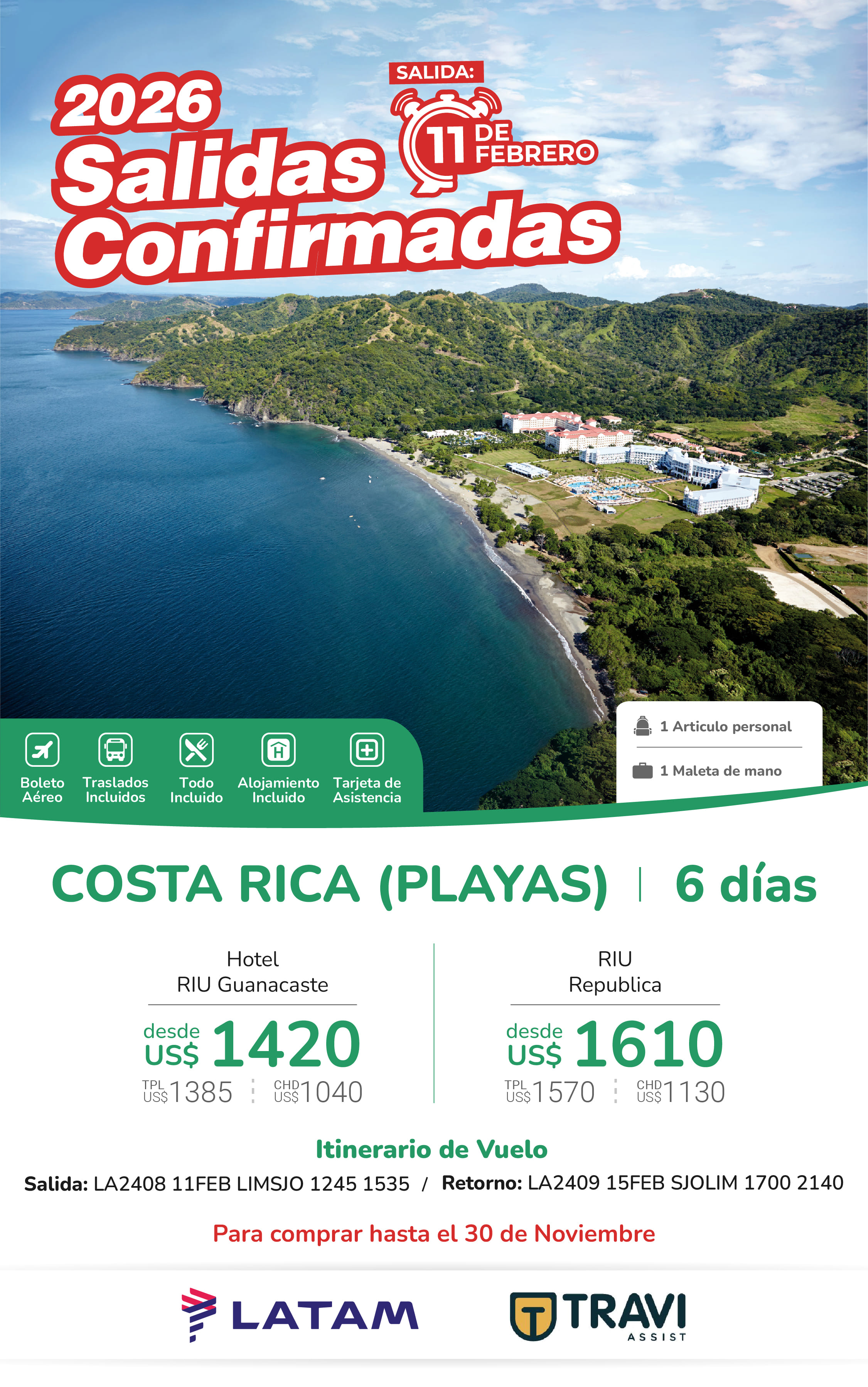 SALIDA CONFIRMADA COSTA RICA CON LATAM 2026