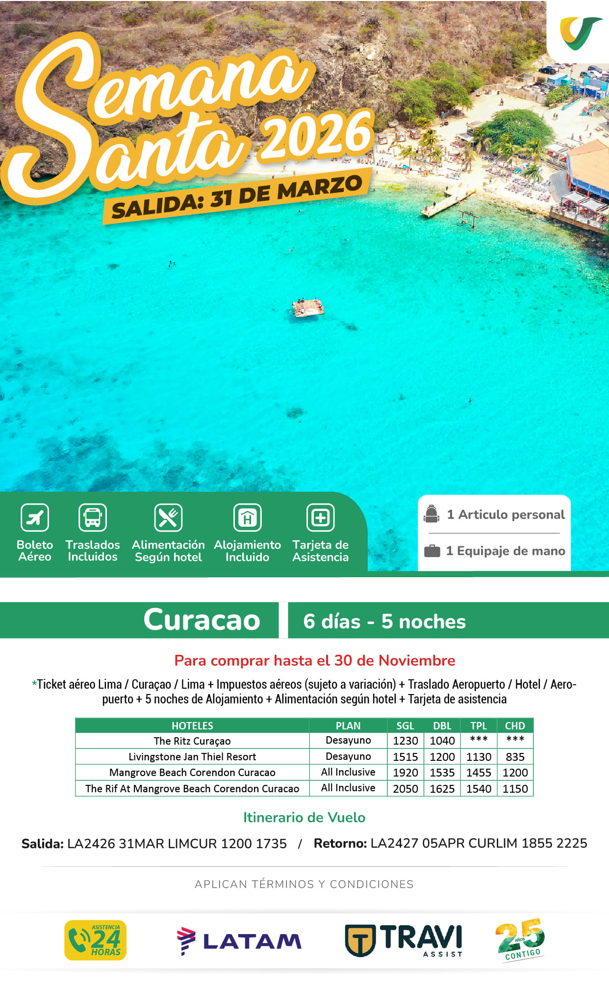 SALIDA CONFIRMADA SEMANA SANTA CURACAO 2026