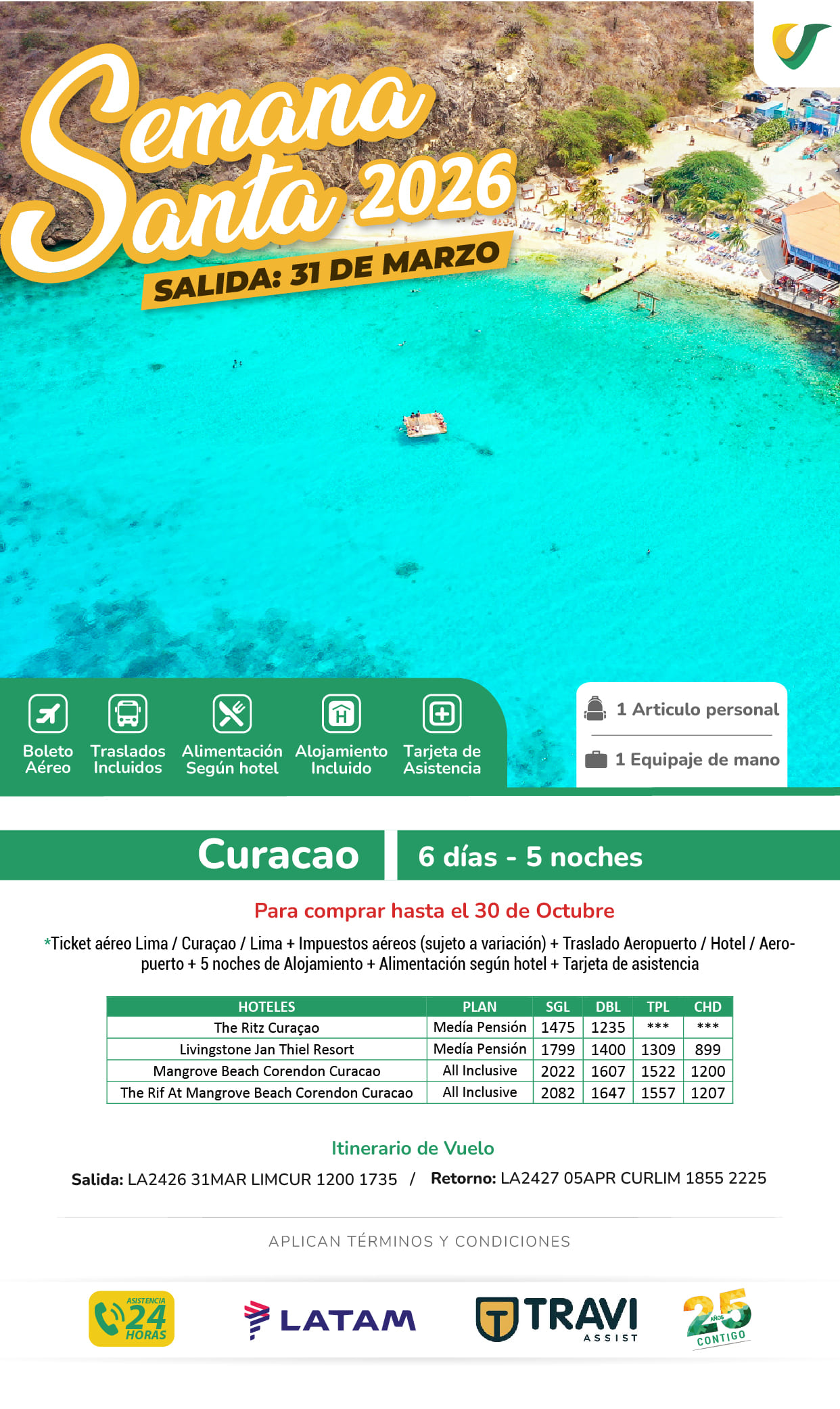 SALIDA CONFIRMADA CURACAO SEMANA SANTA 2026