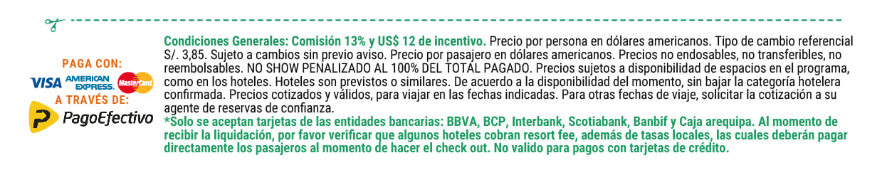 • Seguro de Viaje (coberturas de acuerdo a nuestra web).