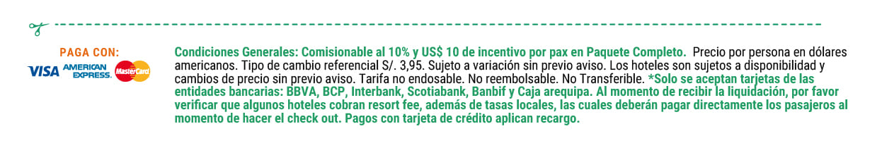 • Traslados aeropuerto / hotel / aeropuerto en regular.