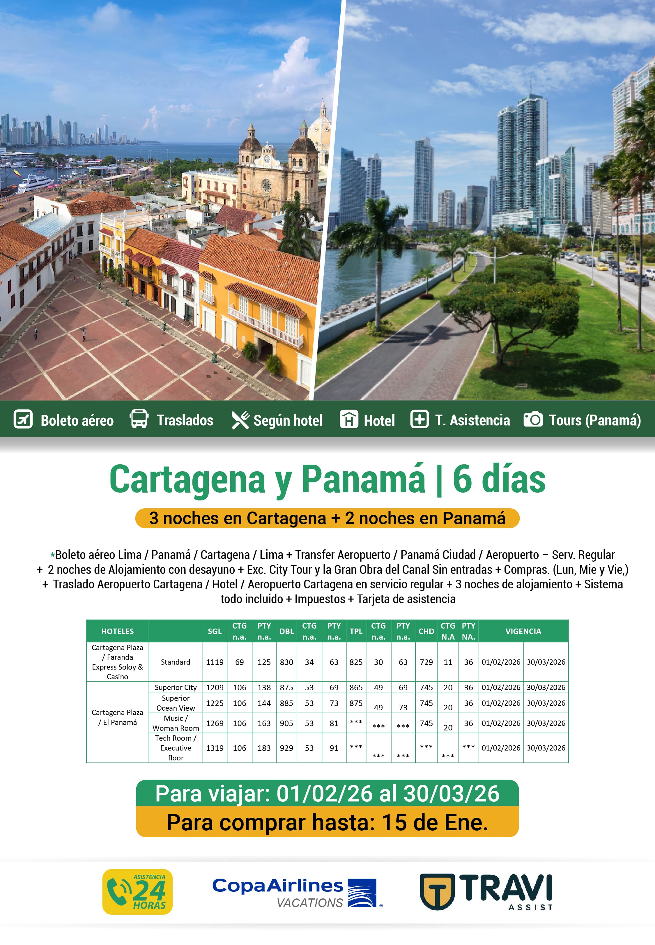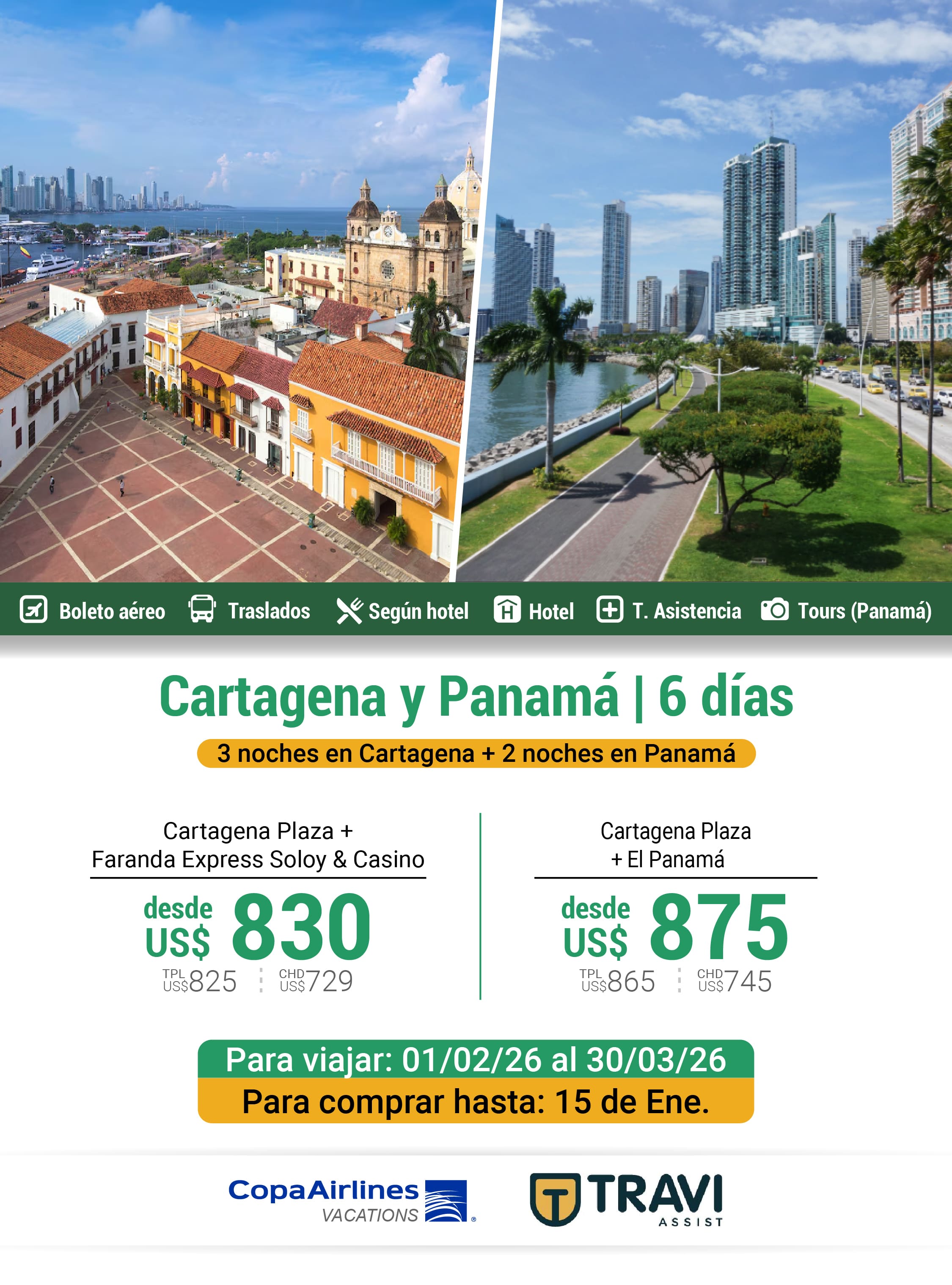• Boleto aéreo Lima / Panamá / Cartagena / Lima