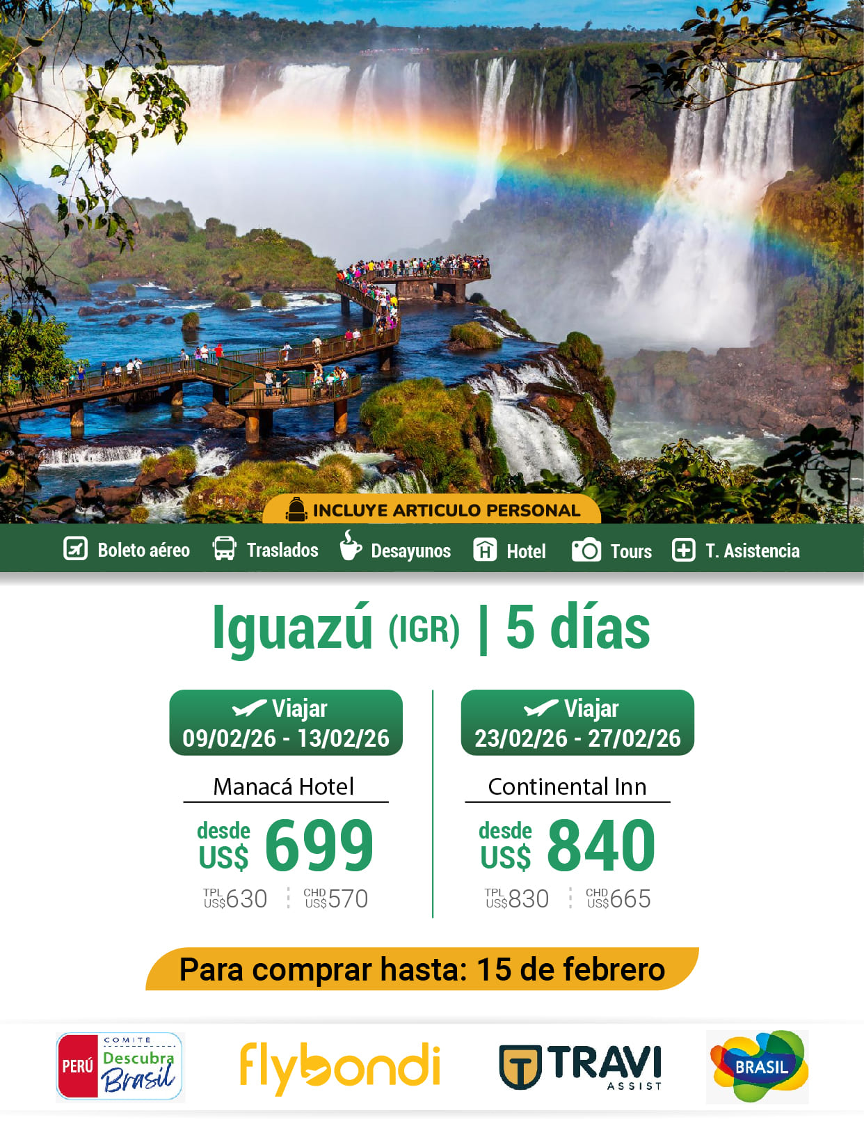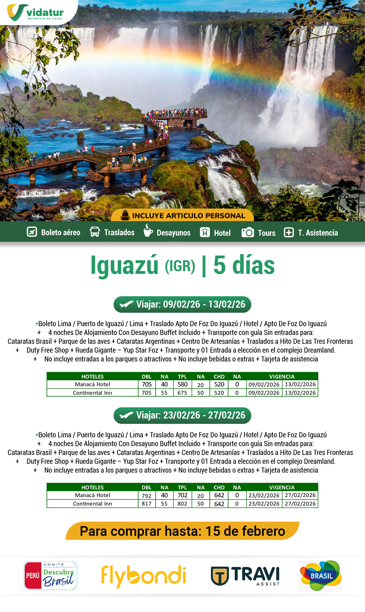 ✔ Para viajar del 09 Feb al 13 Feb 2026 ✔ Compra hasta 15 Feb. 2026