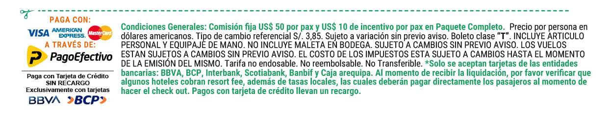 • bebidas nacionales en los restaurante y bares habilitados, snacks en el área de la piscina, recreación dirigida, uso de kayaks y juegos de mesa
