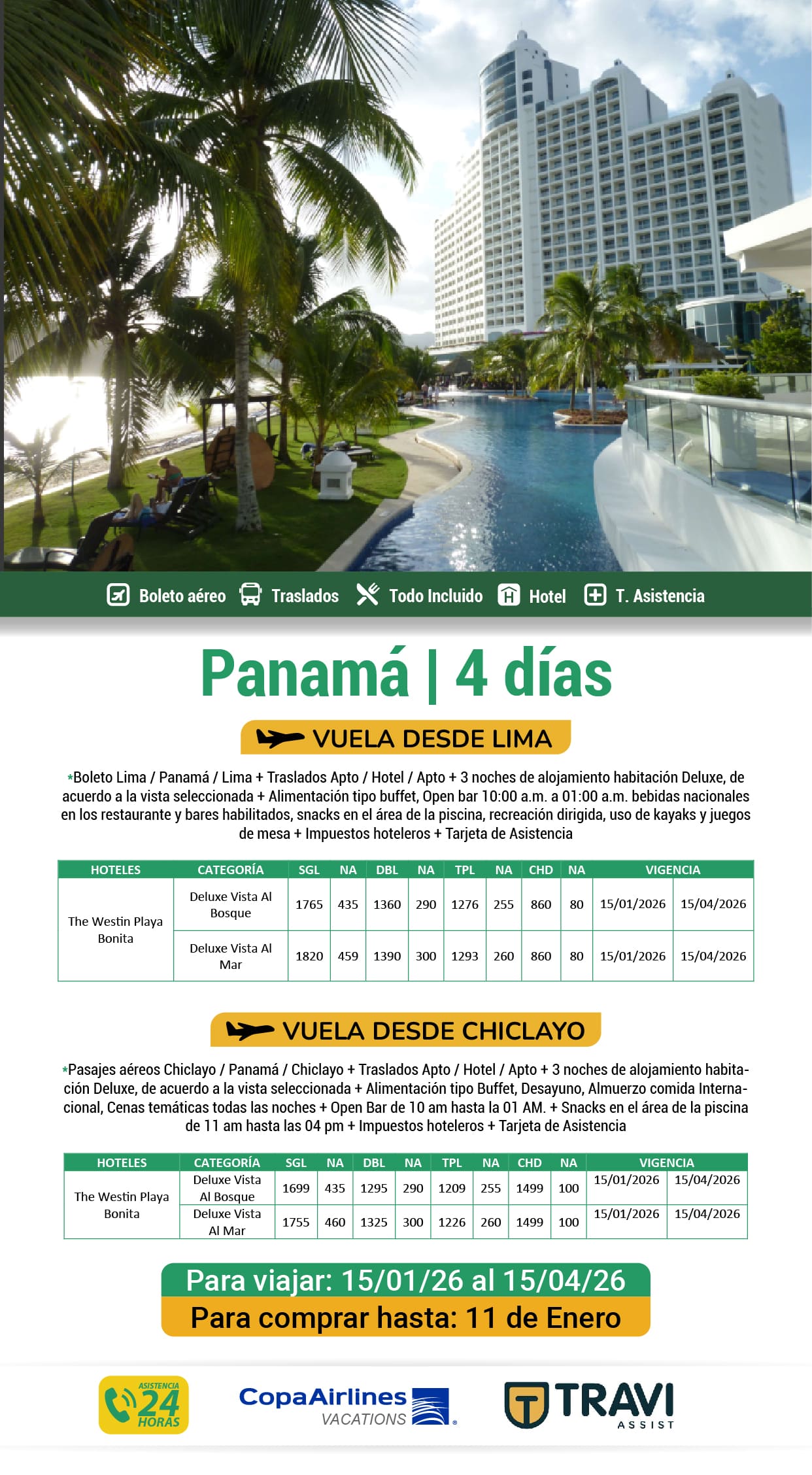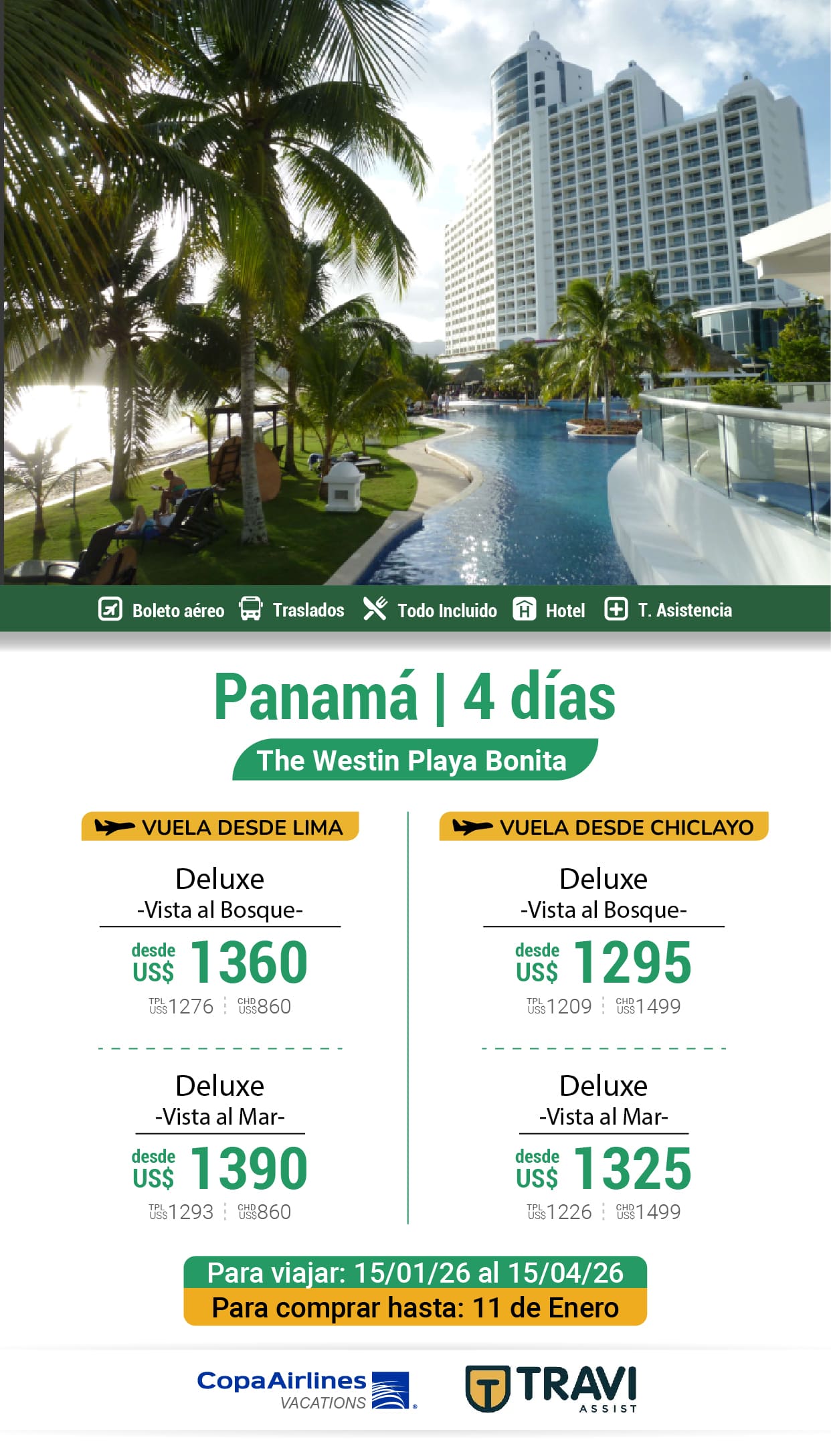 PROMO PANAMA HOTEL WESTIN PLAYA BONITA DESDE LIMA O CHICLAYO 2026