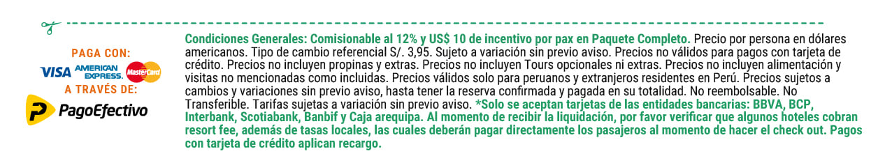 • Traslado aeropuerto/ hotel / aeropuerto en regular.