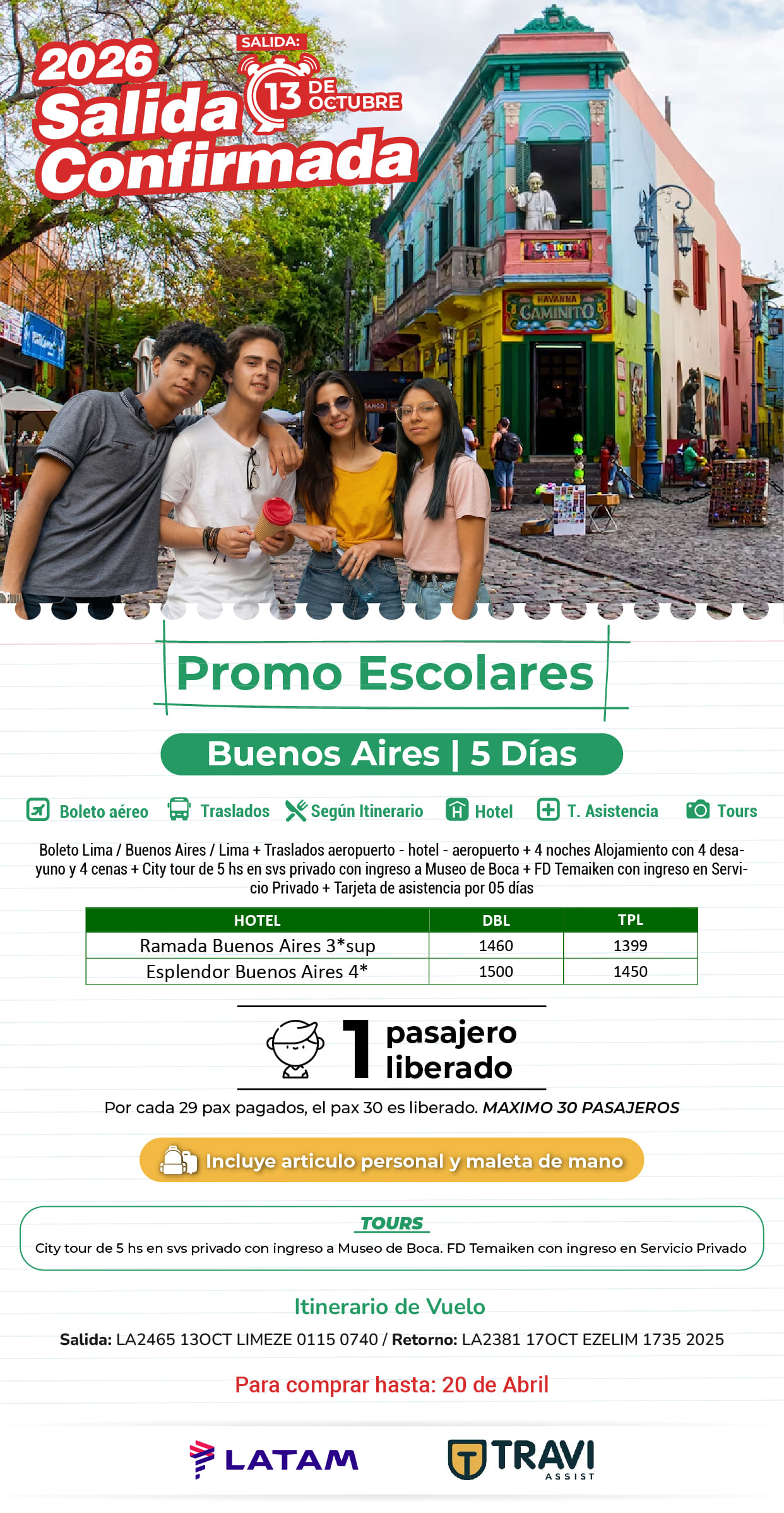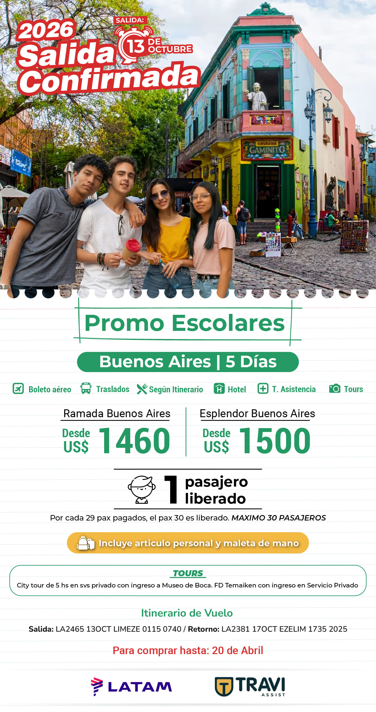 Salida Confirmada Promo Escolares Buenos Aires