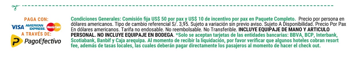 • Impuestos necesarios para la emisión del boleto sujeto a cambios sin previo aviso.
