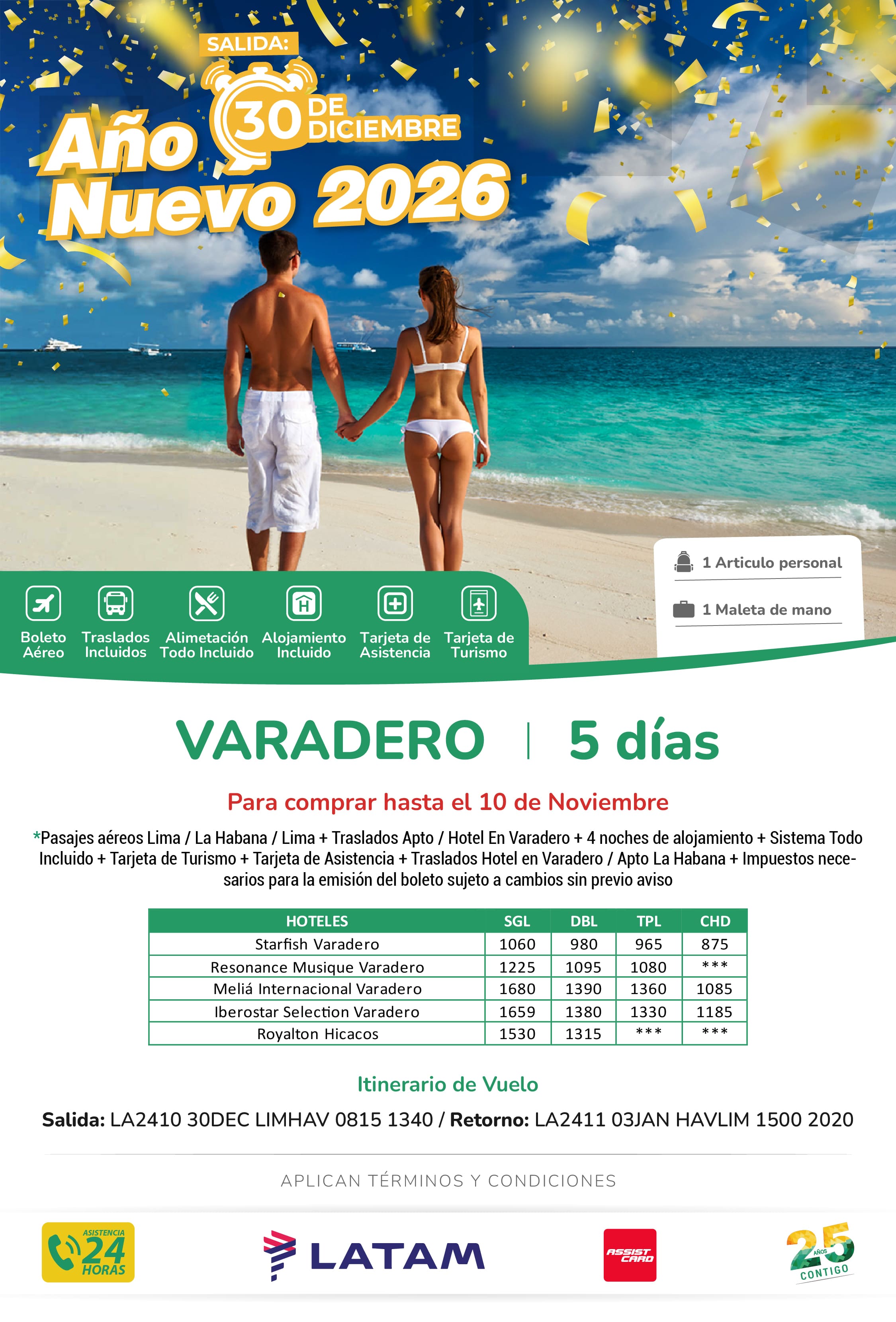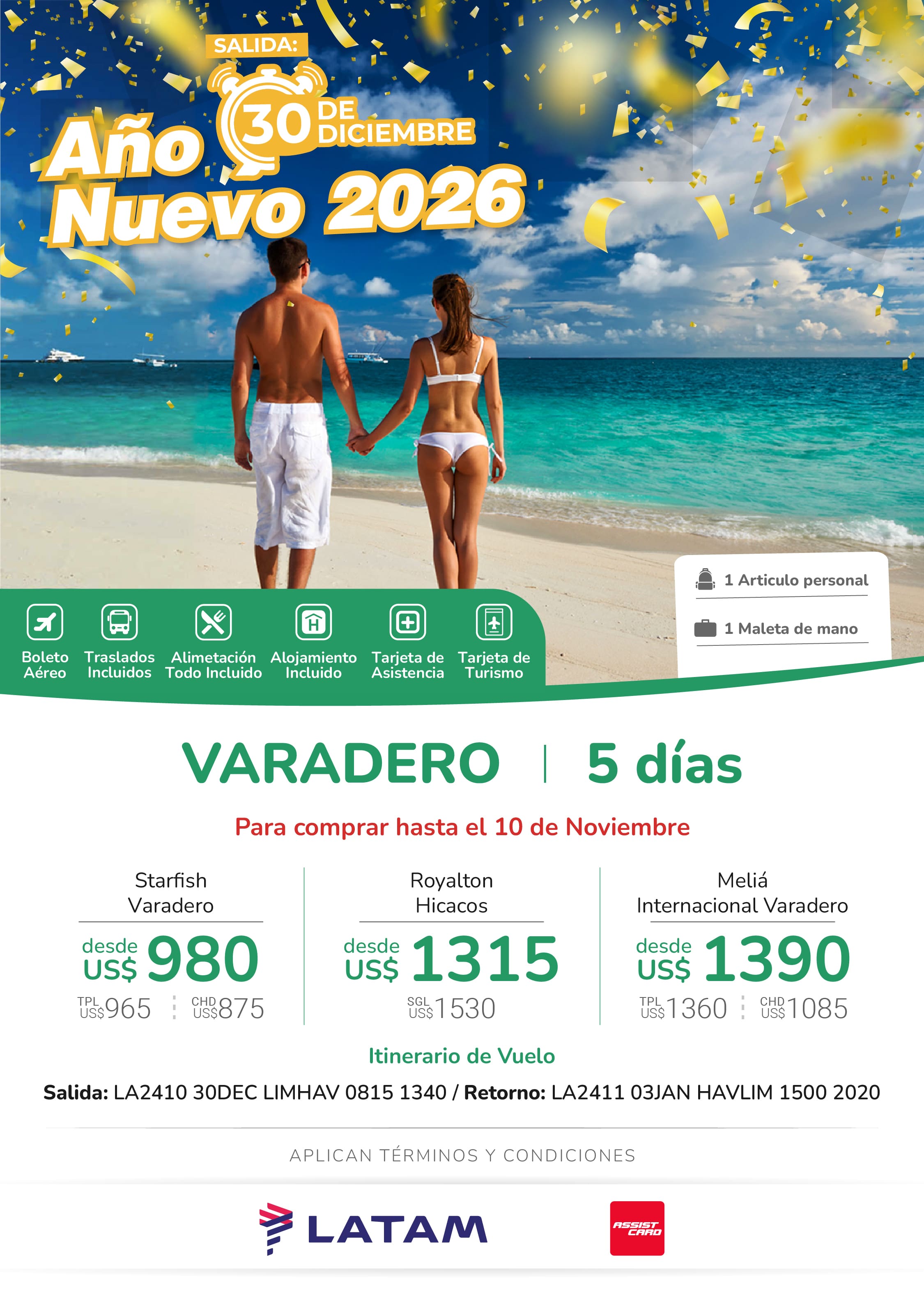 SALIDA CONFIRMADA AÑO NUEVO VARADERO CON LATAM 2026