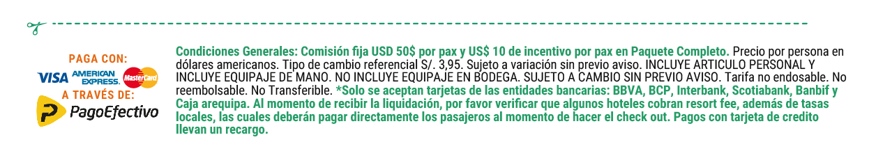 • Impuestos necesarios para la emisión del boleto sujeto a cambios sin previo aviso.