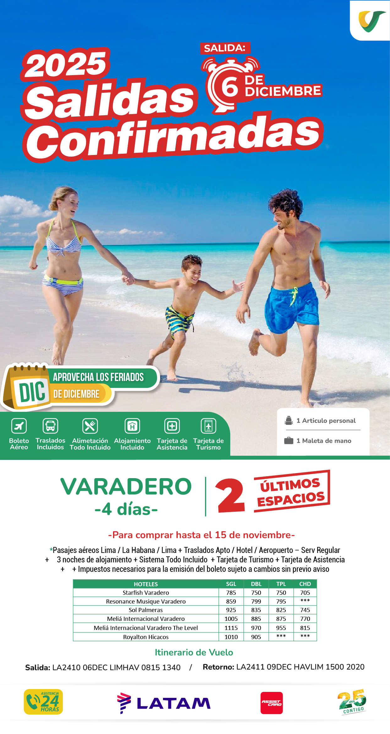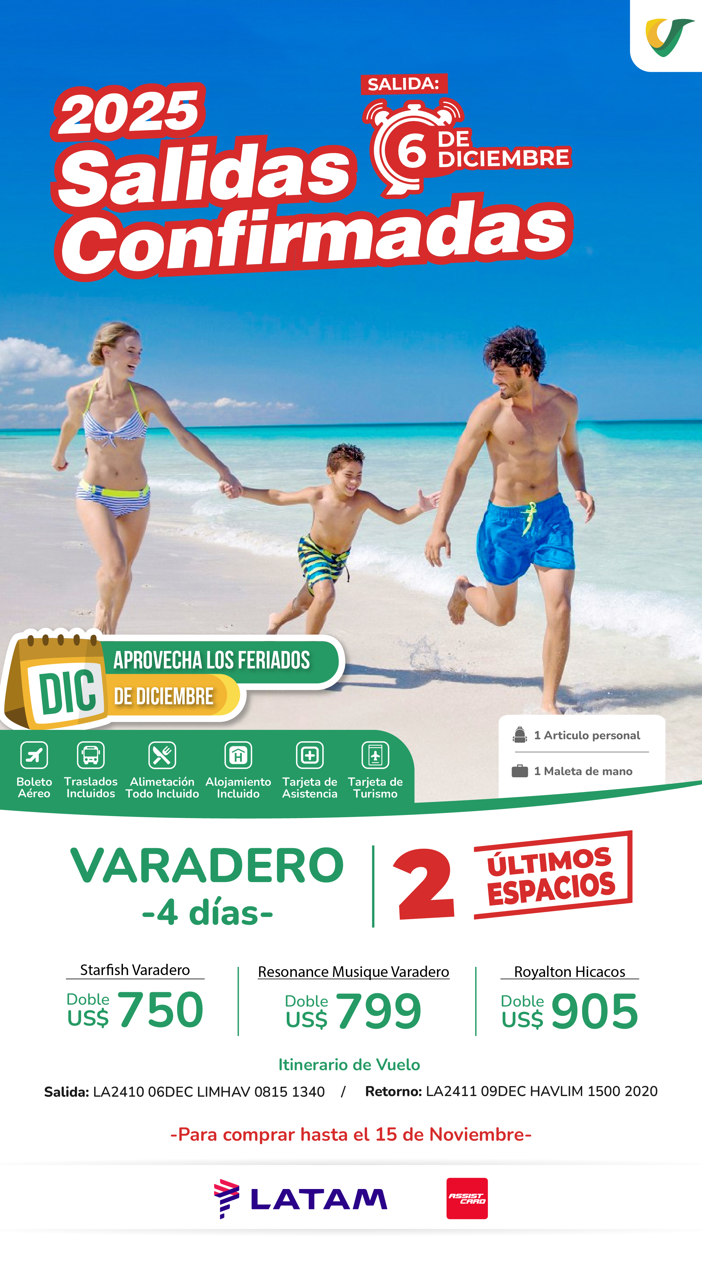 SALIDA CONFIRMADA VARADERO CON LATAM 2025