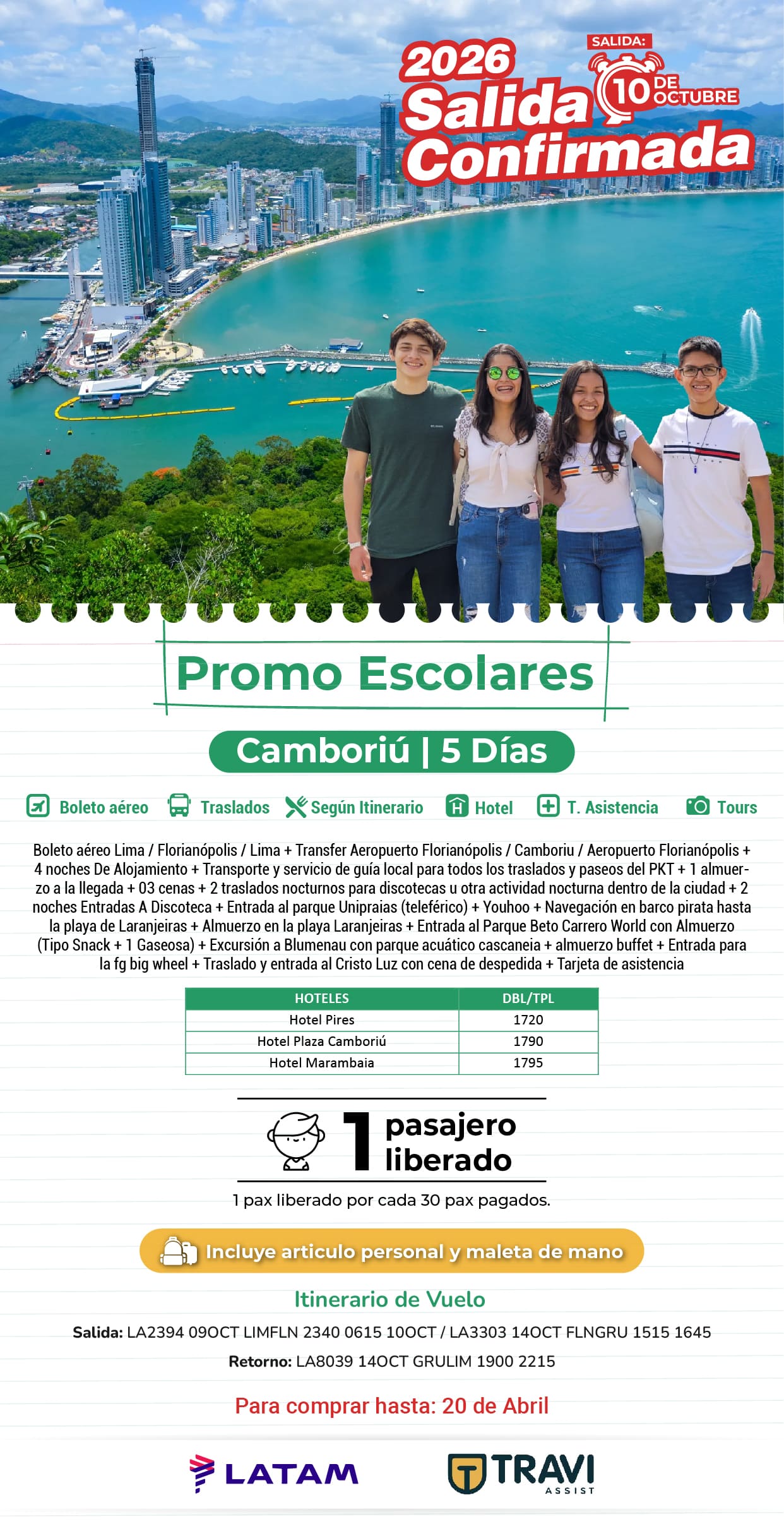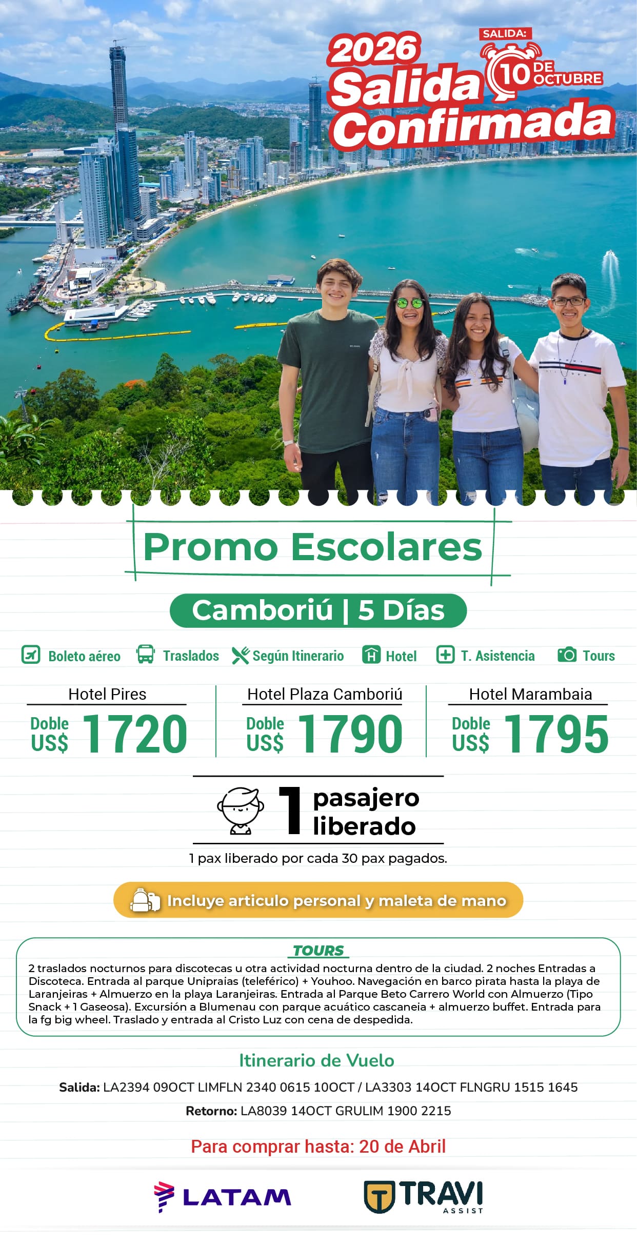 Salidas Conf. Promo Escolares Camboriú