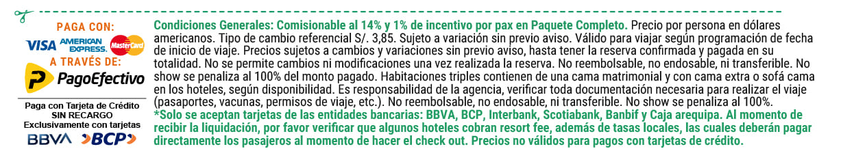 • Guías locales en español en las visitas indicadas en el itinerario