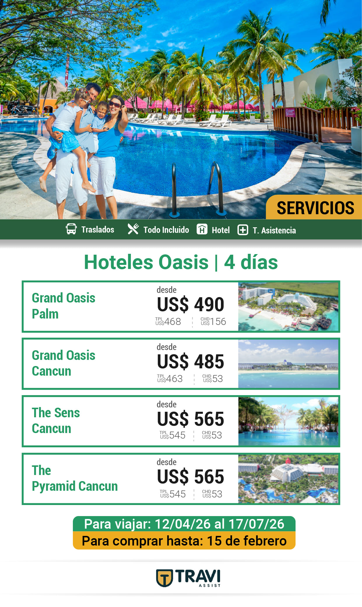 SOLO SERVICIOS CANCUN HOTELES OASIS 2026