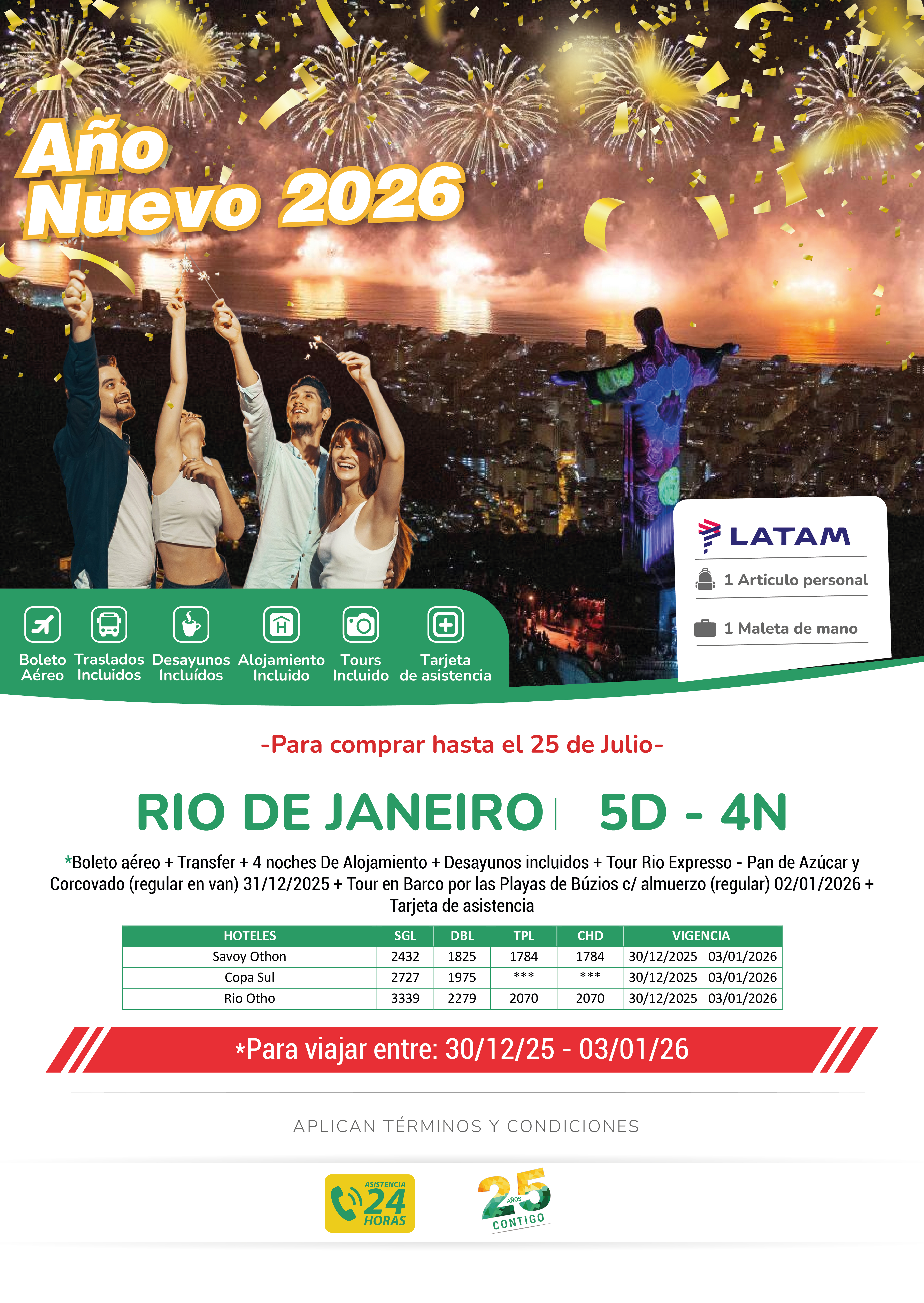 • Boleto aéreo Lima / Rio de Janeiro / Lima