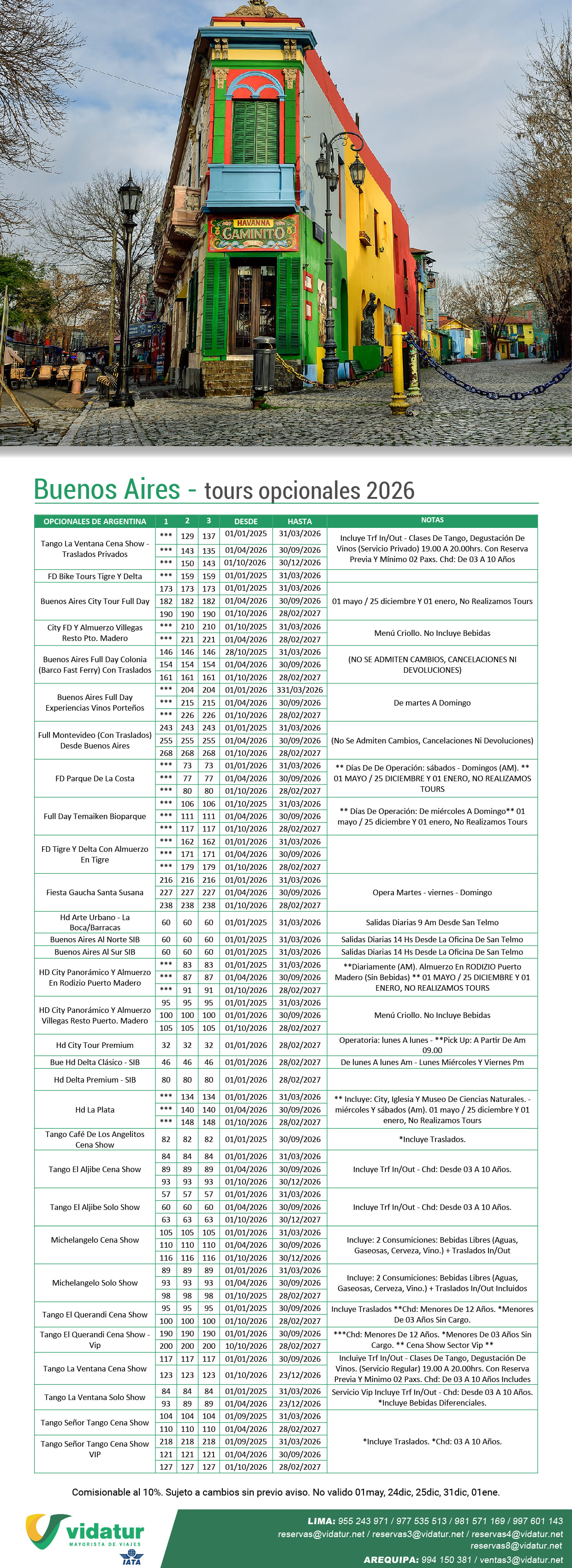 TOURS OPCIONALES BUENOS AIRES 2026