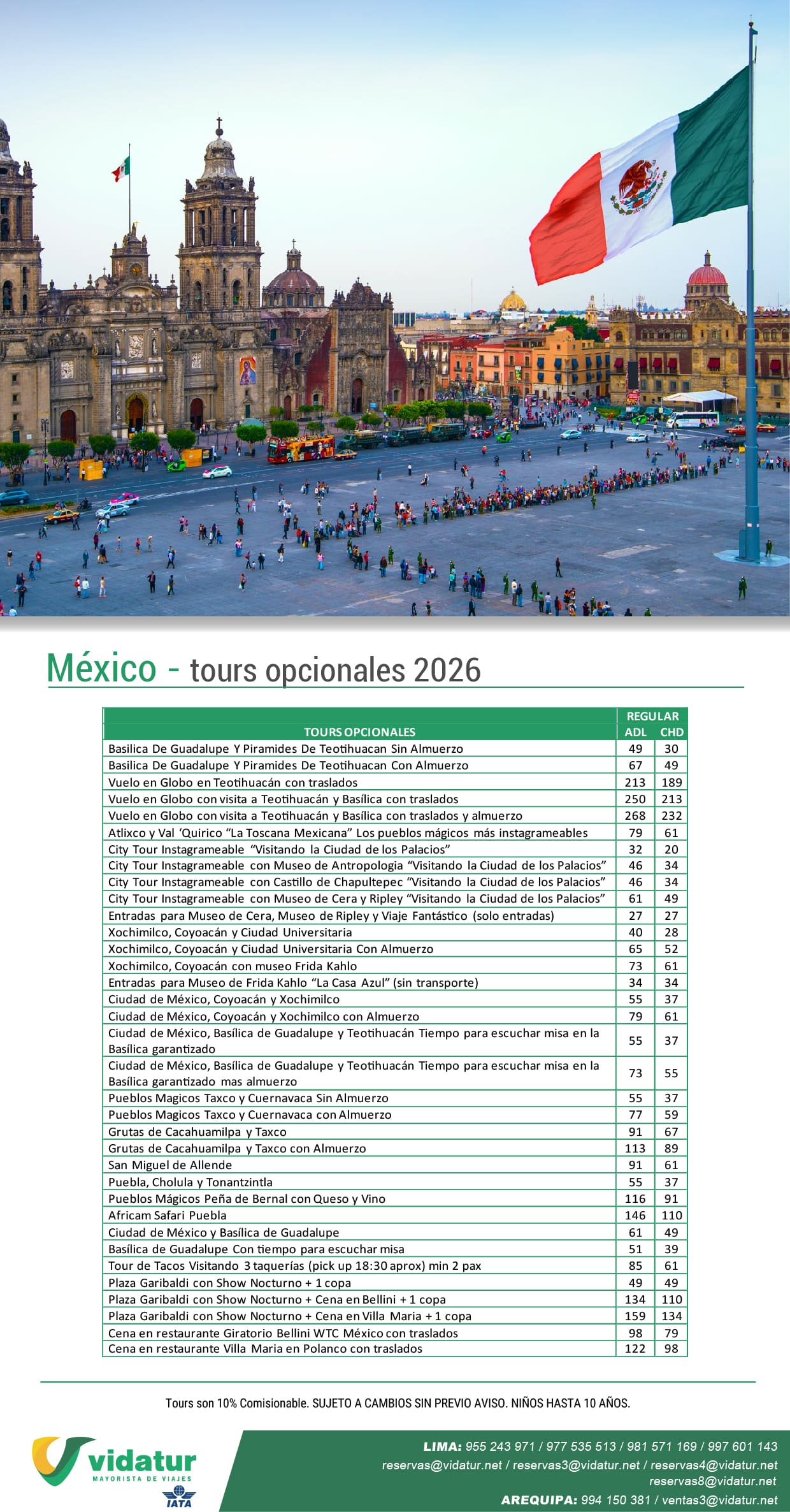 TOURS OPCIONALES MEXICO 2026