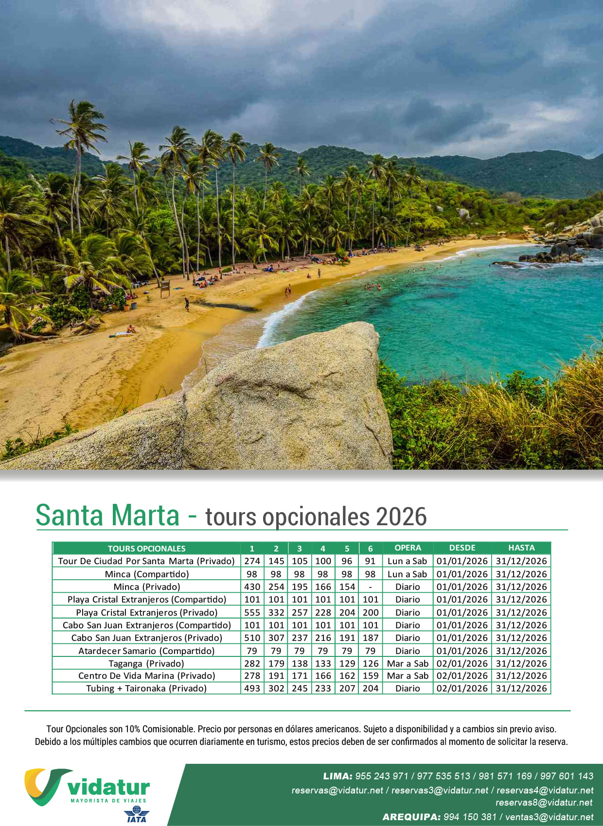 TOURS OPCIONALES SANTA MARTA 2026