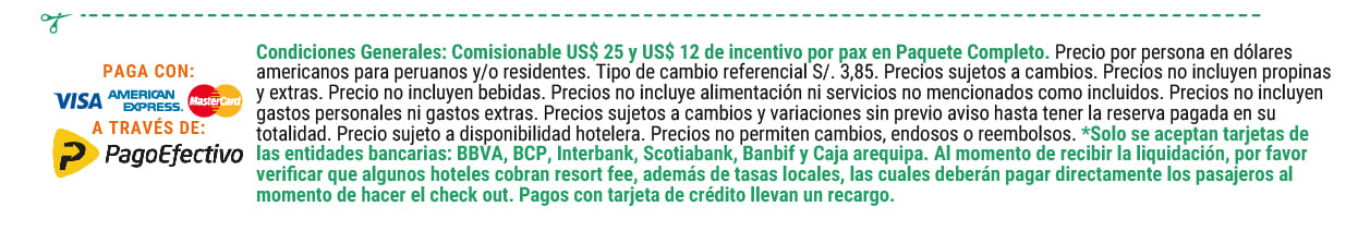 • 02 noches Alojamiento en tipo de habitación elegida.
