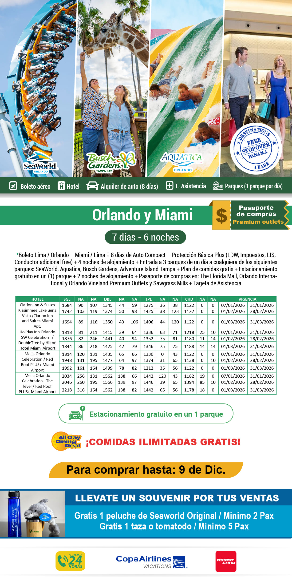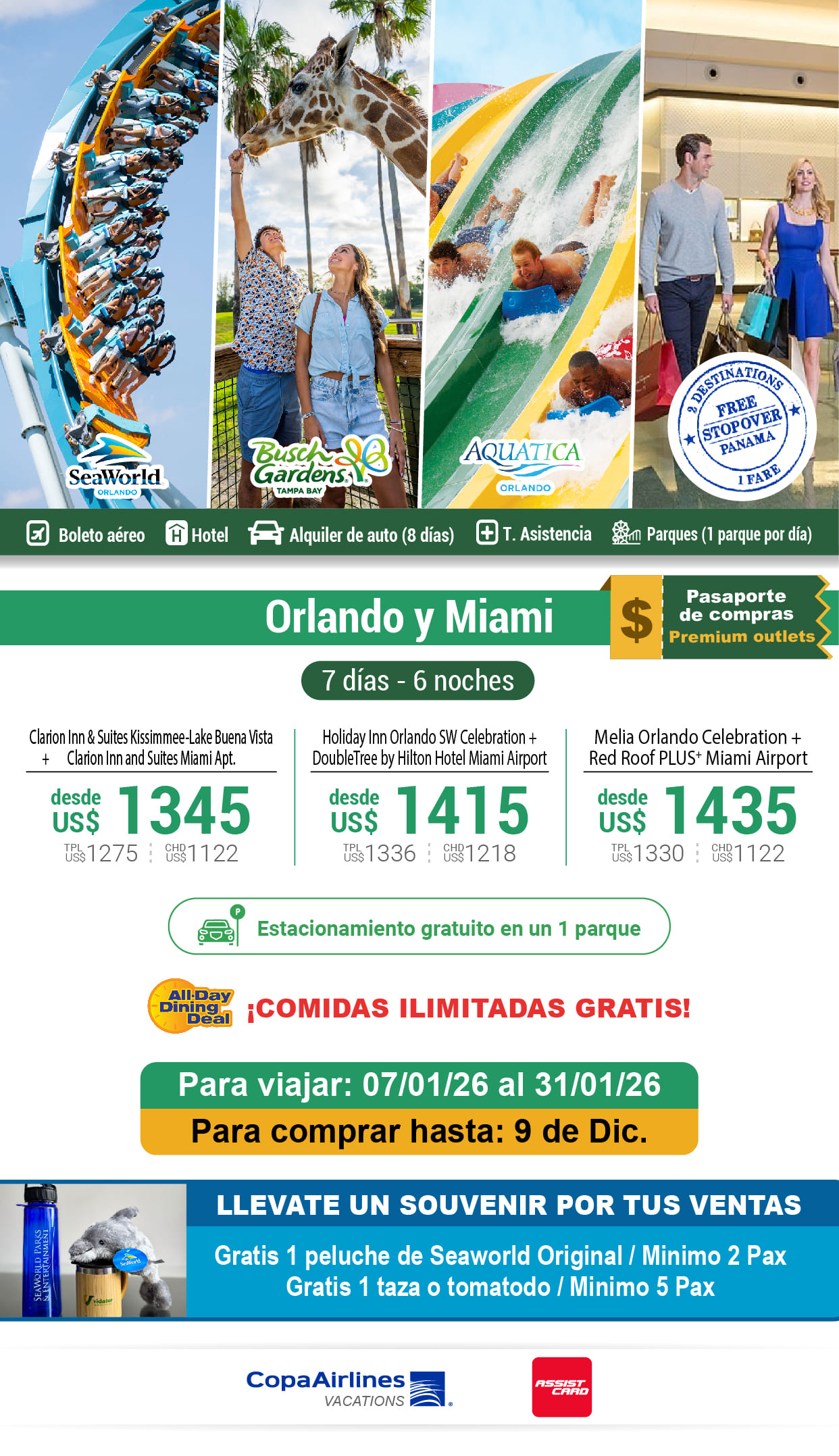 PROMOCION ORLANDO Y MIAMI CON COPA AIRLINES 2026