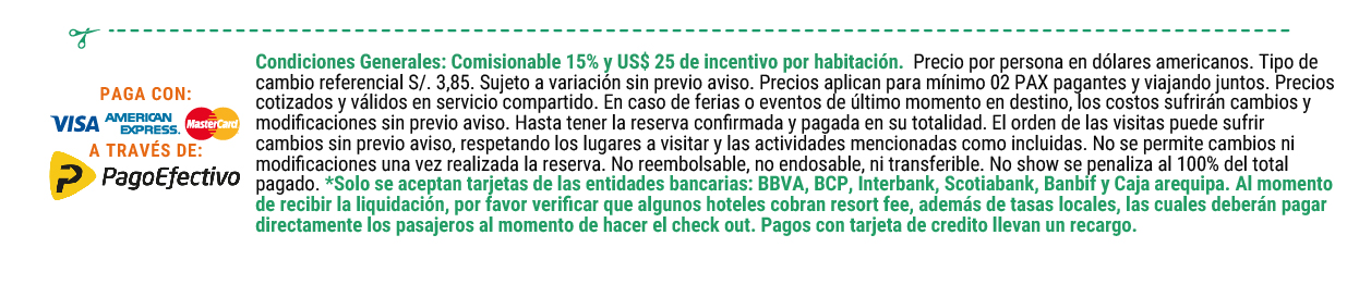 • 06 noches de alojamiento en hoteles previstos o similares.