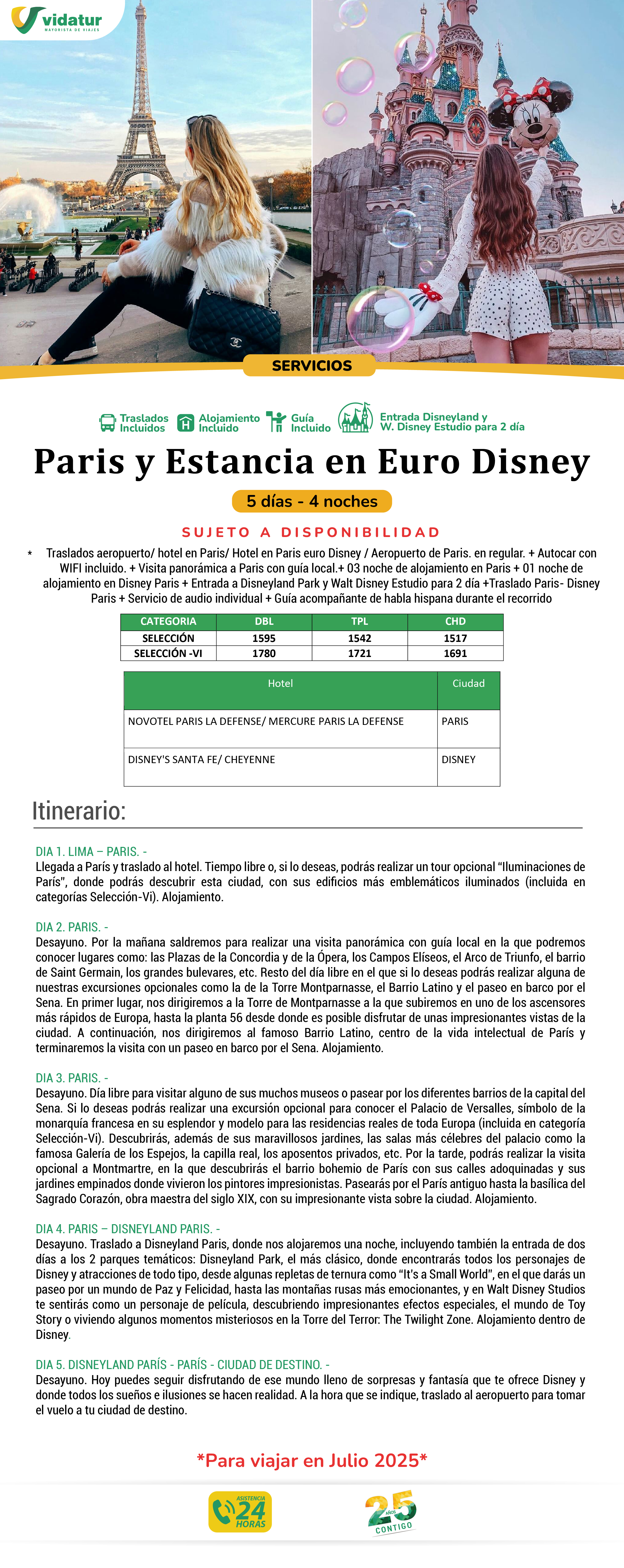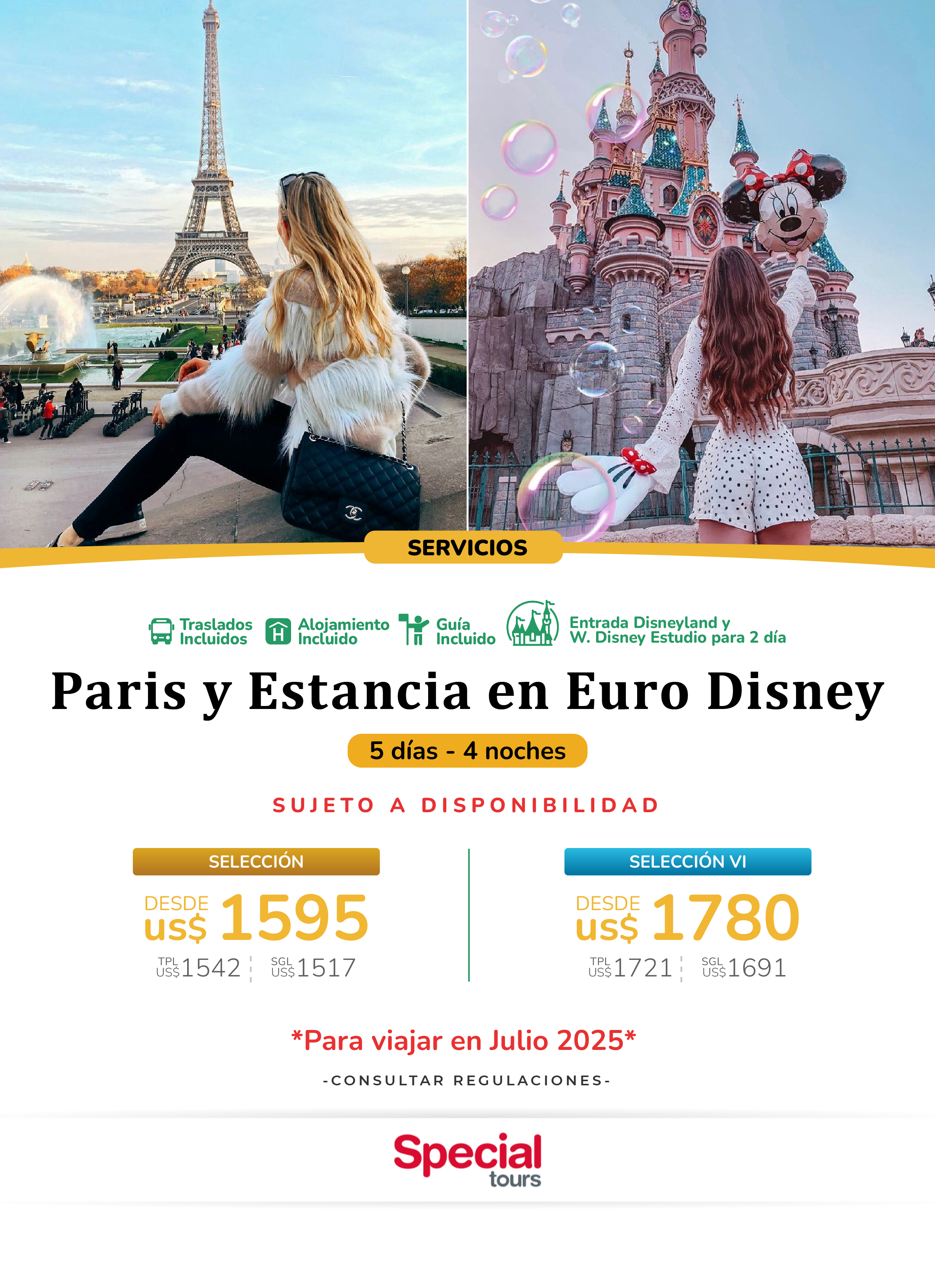 • SOLO INCLUYE EN CATEGORÍA SELECCIÓN-VI ($$$) *Iluminaciones en Paris con guía local. *Excursión al Palacio de Versalles con guía local y entrada incluida