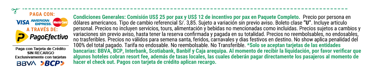 • Traslados Aeropuerto/Hotel/Aeropuerto cortesía del hotel