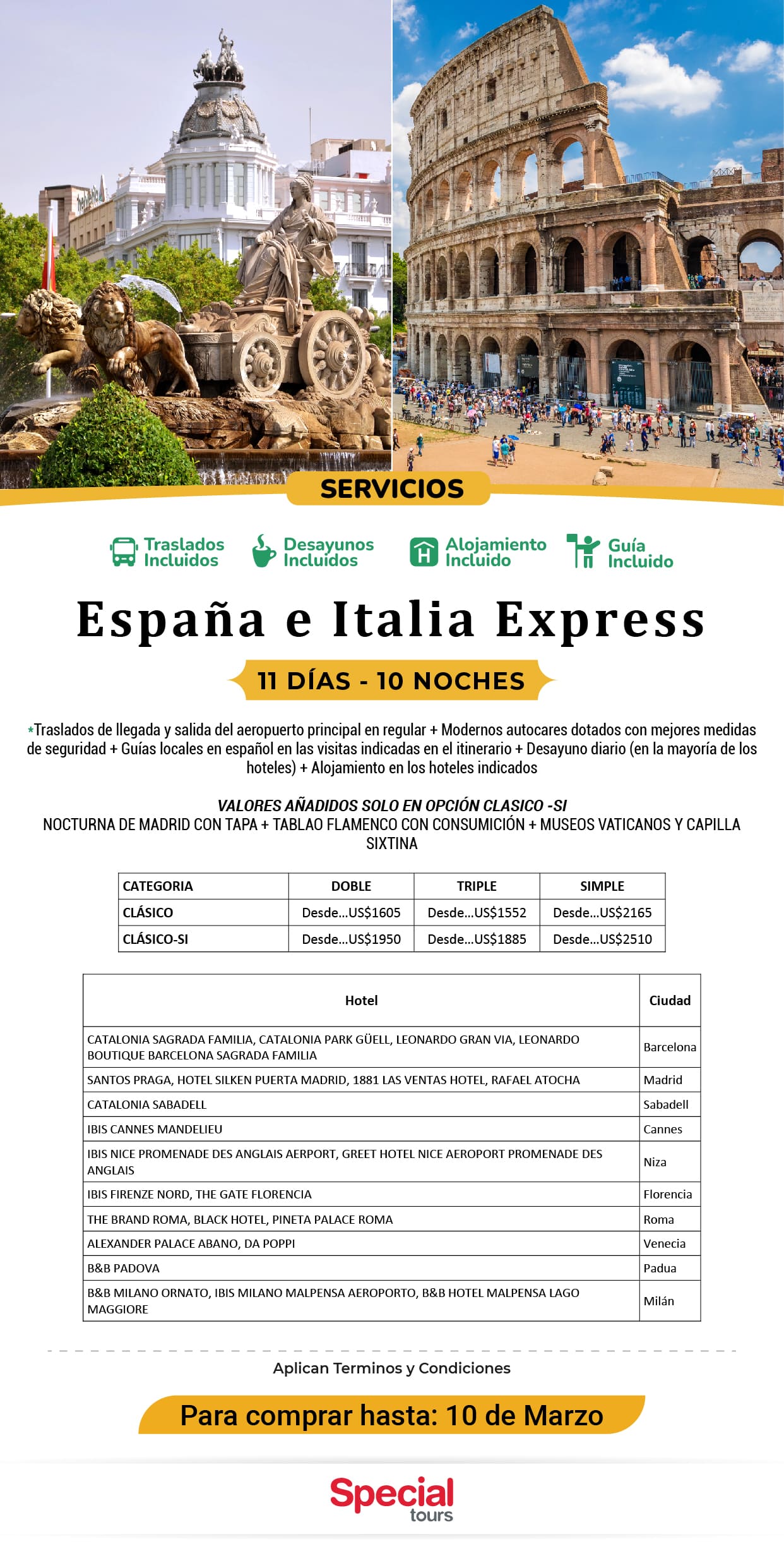 SOLO SERVICIOS ESPAÑA E ITALIA EXPRESS 2026