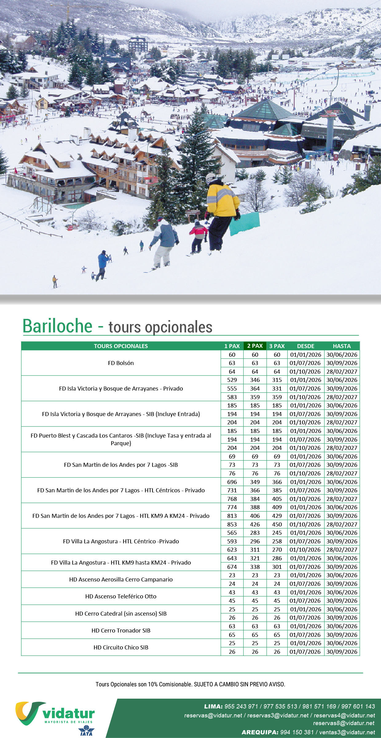 Tours opcionales Bariloche 2026